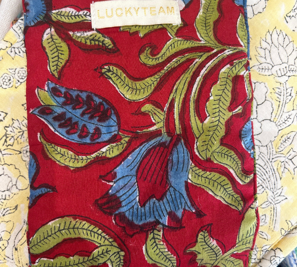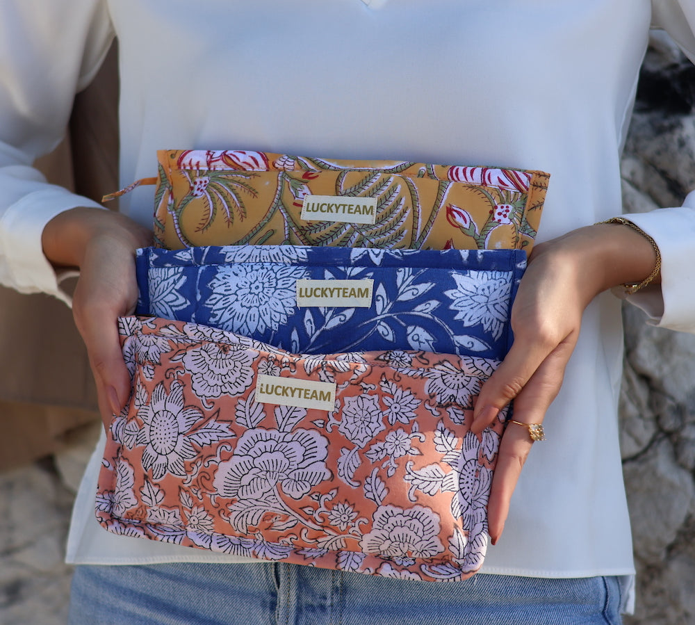 PINK AND FLOWERS BLOCK PRINT POUCH