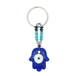 Porte-clefs petite main de Fatma oeil en pâte de verre soufflé bleu