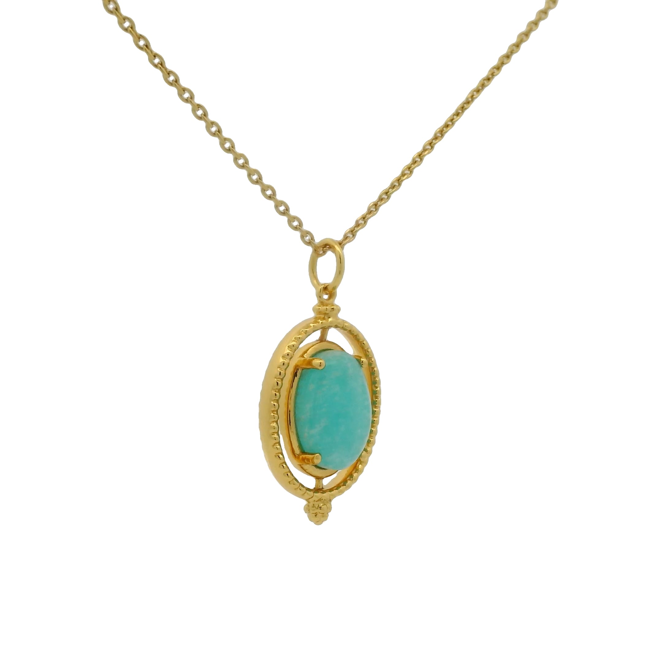 Collier doré tubes avec amazonite et médaille vierge 42 cm