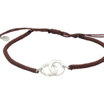 Bracelet cordon marron clair menottes argent 925