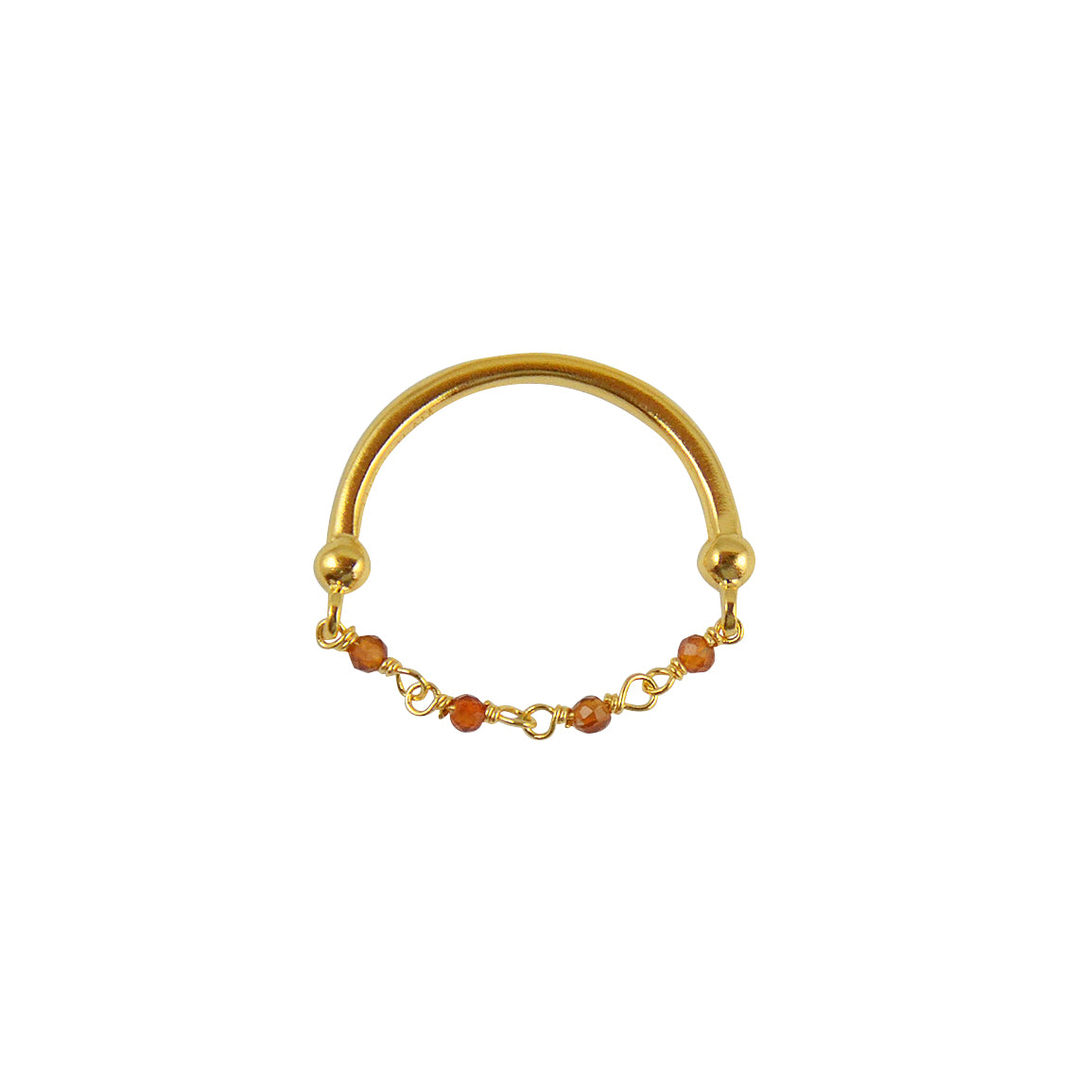 Ring in brass gilded with 18k fine gold, half rigid, half chain and faceted natural stones.