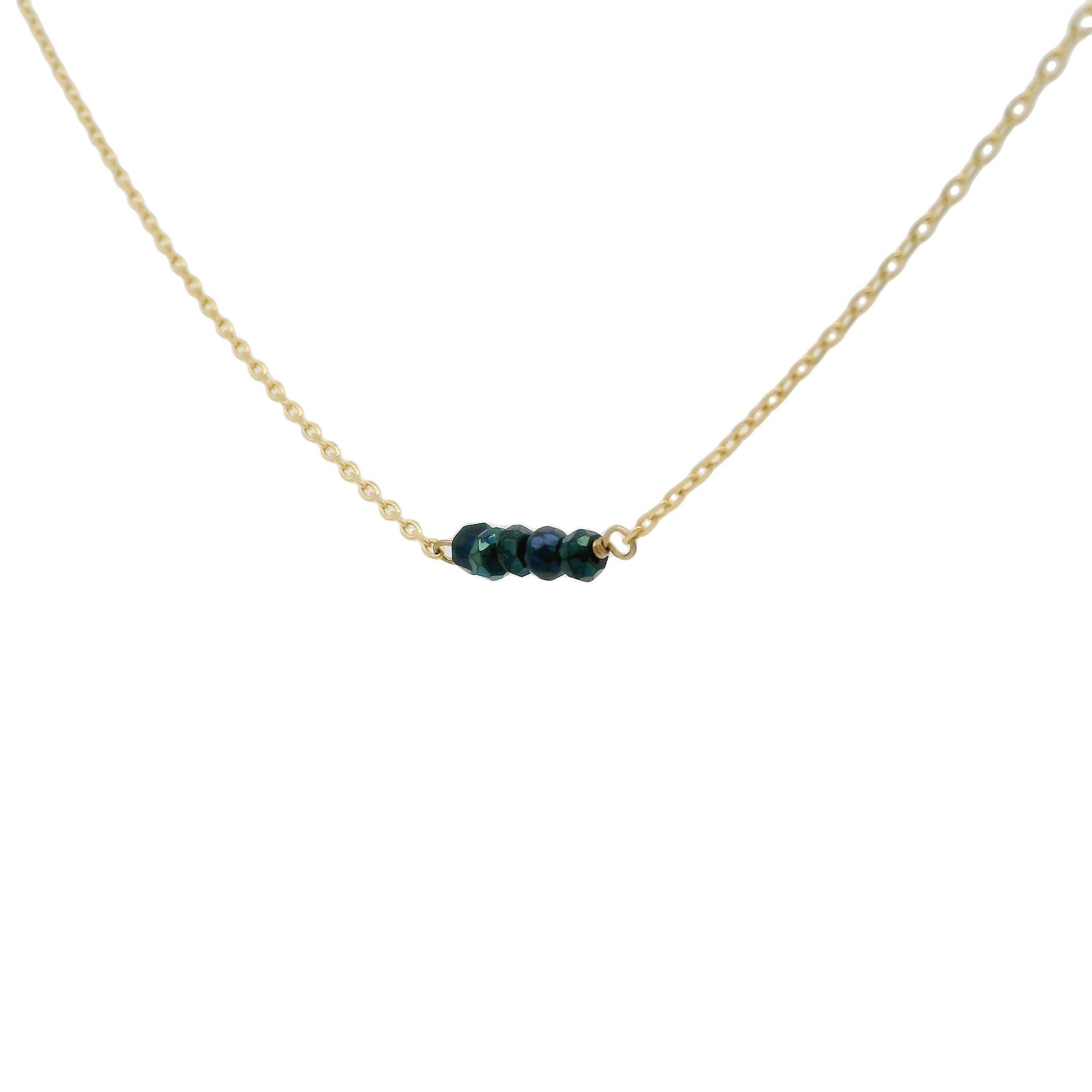 Choker necklace in brass gilded with 18k fine gold and natural stones in a row. The stones are faceted for more reflections.