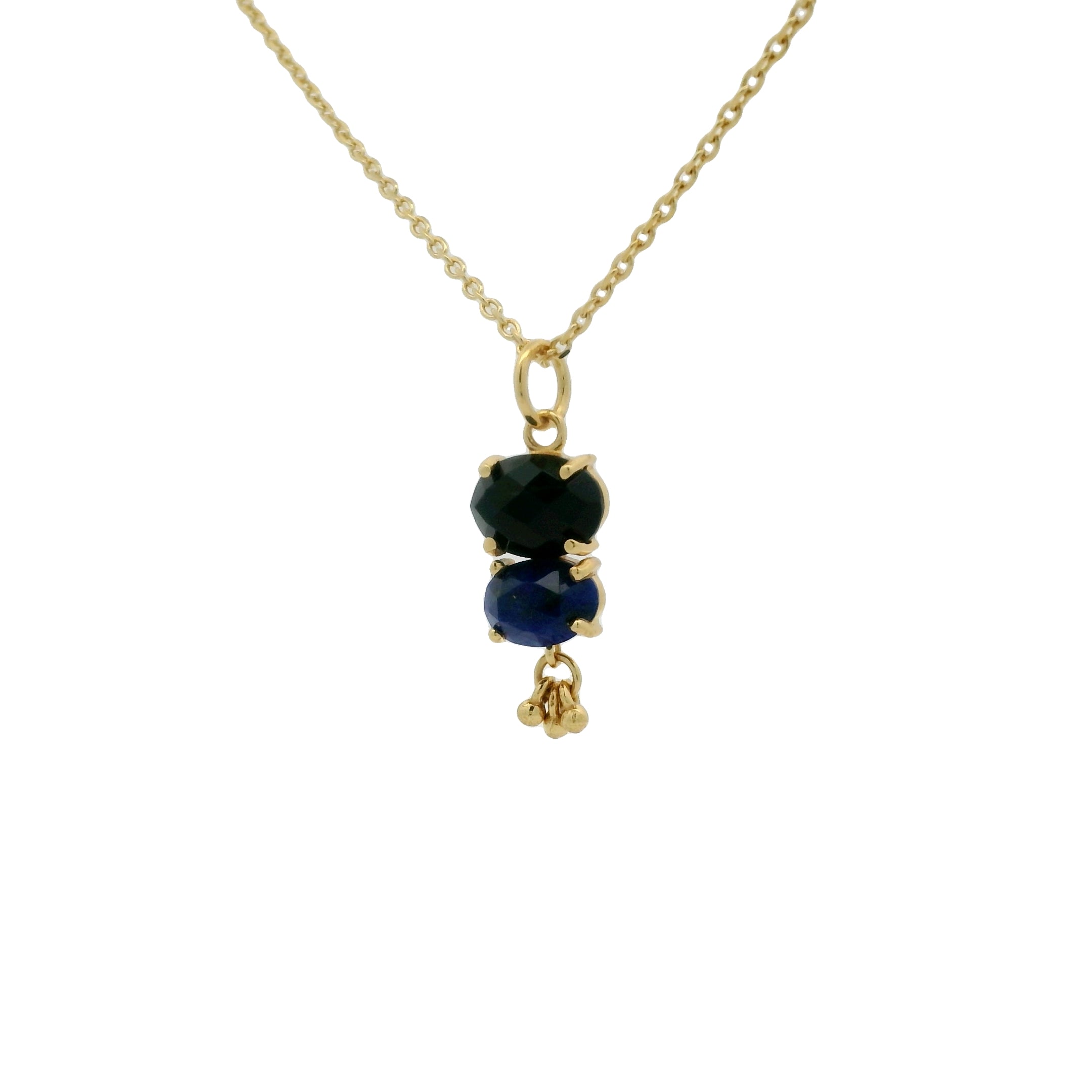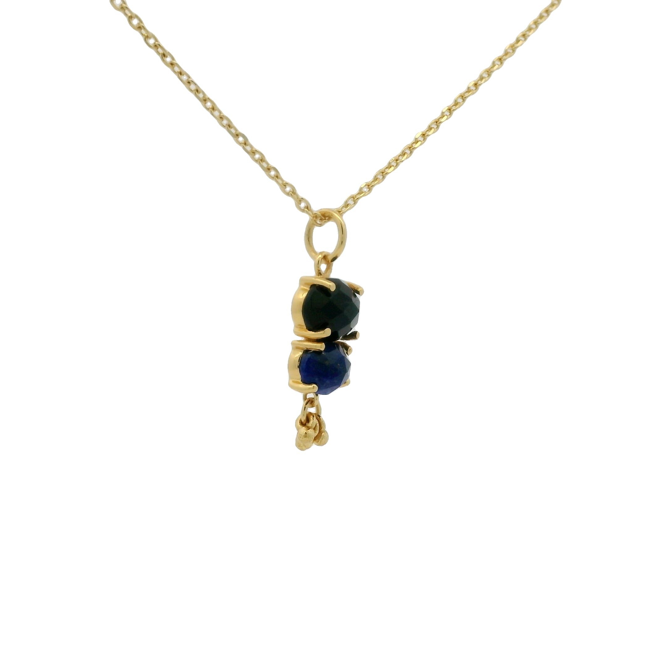 Necklace in brass gilded with 18k fine gold and pendant made up of 2 semi-precious natural stones finished with a golden tassel.