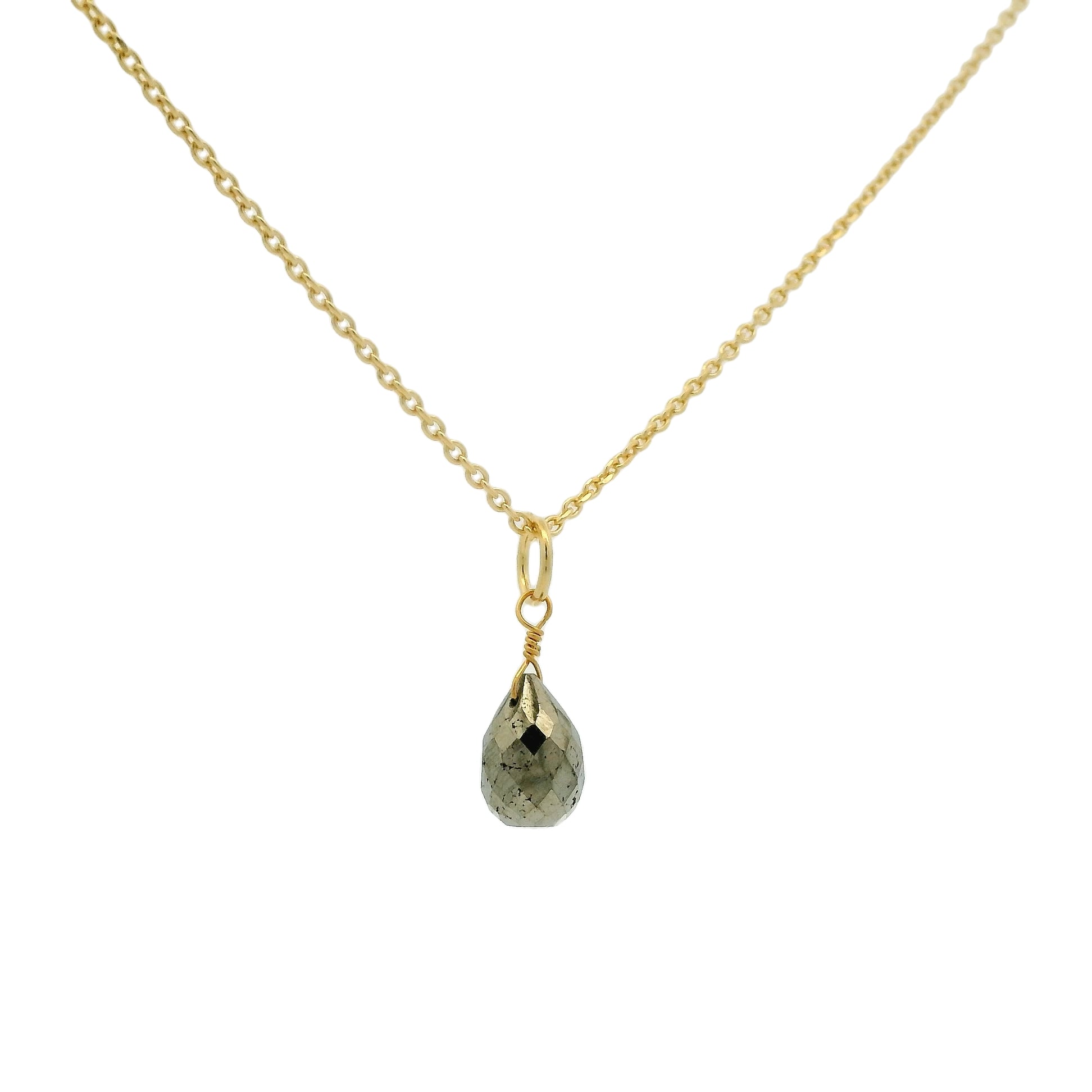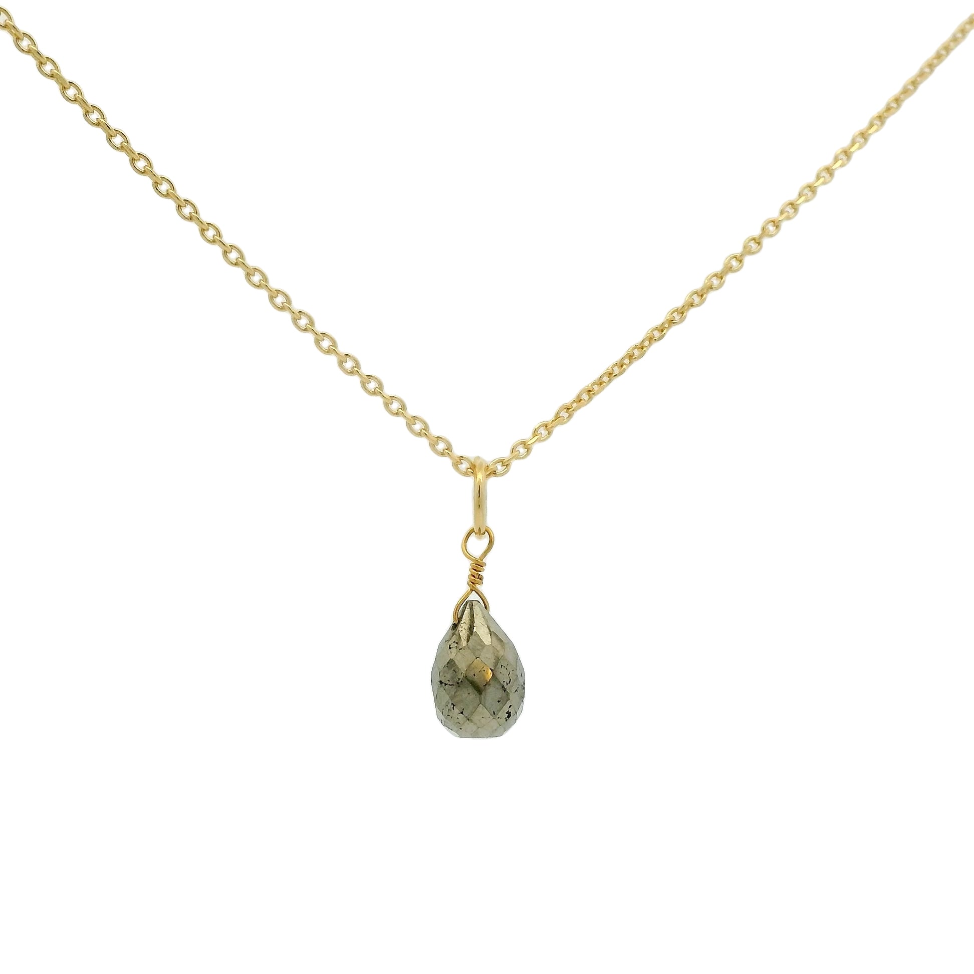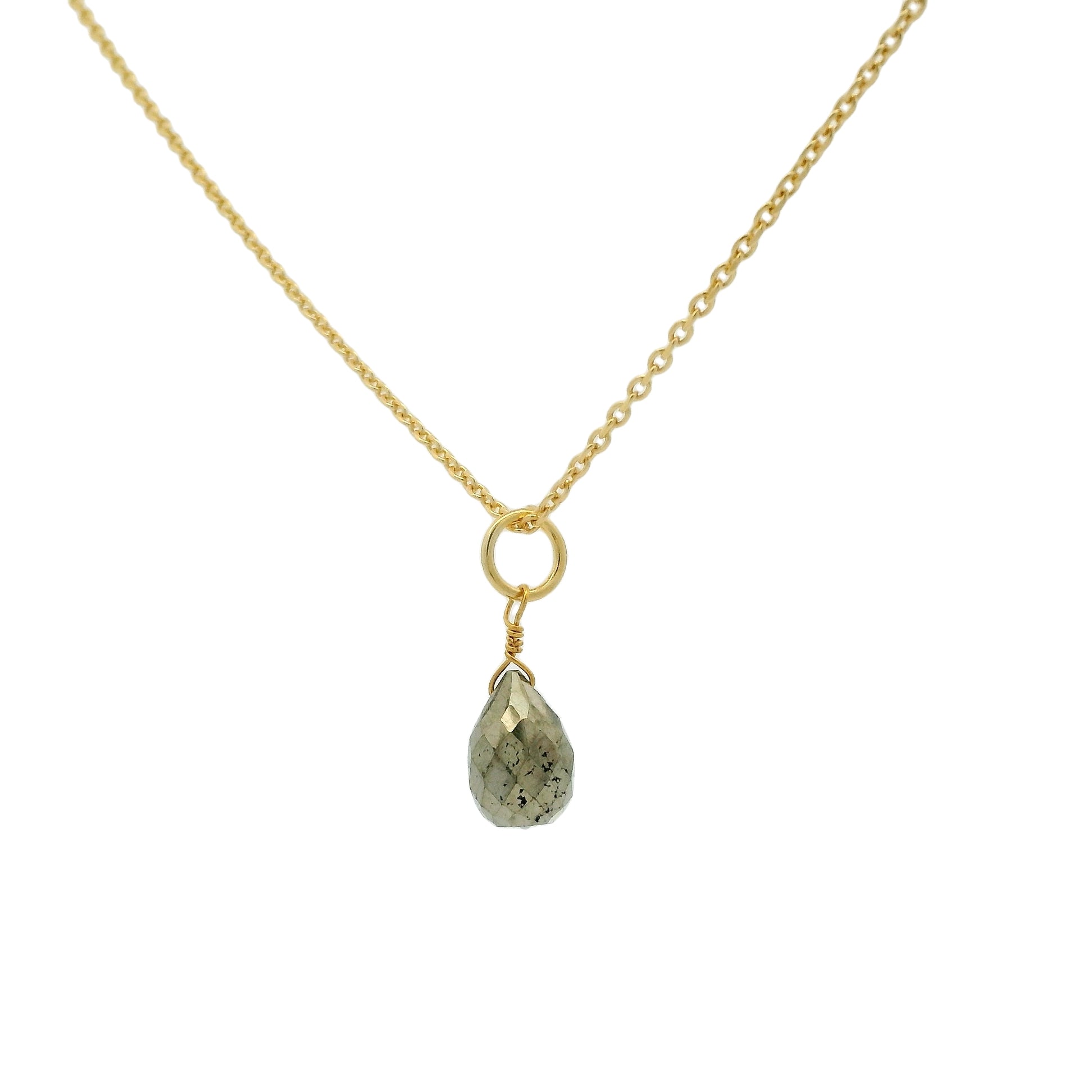 Necklace in brass gilded with 18k fine gold and pendant in semi-precious natural stone cut into a faceted drop.