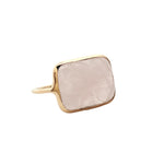 Quartz rose rectangulaire serti de doré : 14 mm x 17 mm