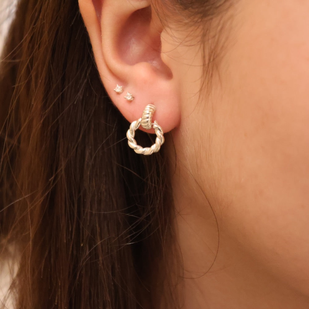 925 silver earrings consisting of 2 rings. The first fixed ring holds the second which is placed in front and which will move according to your movements.