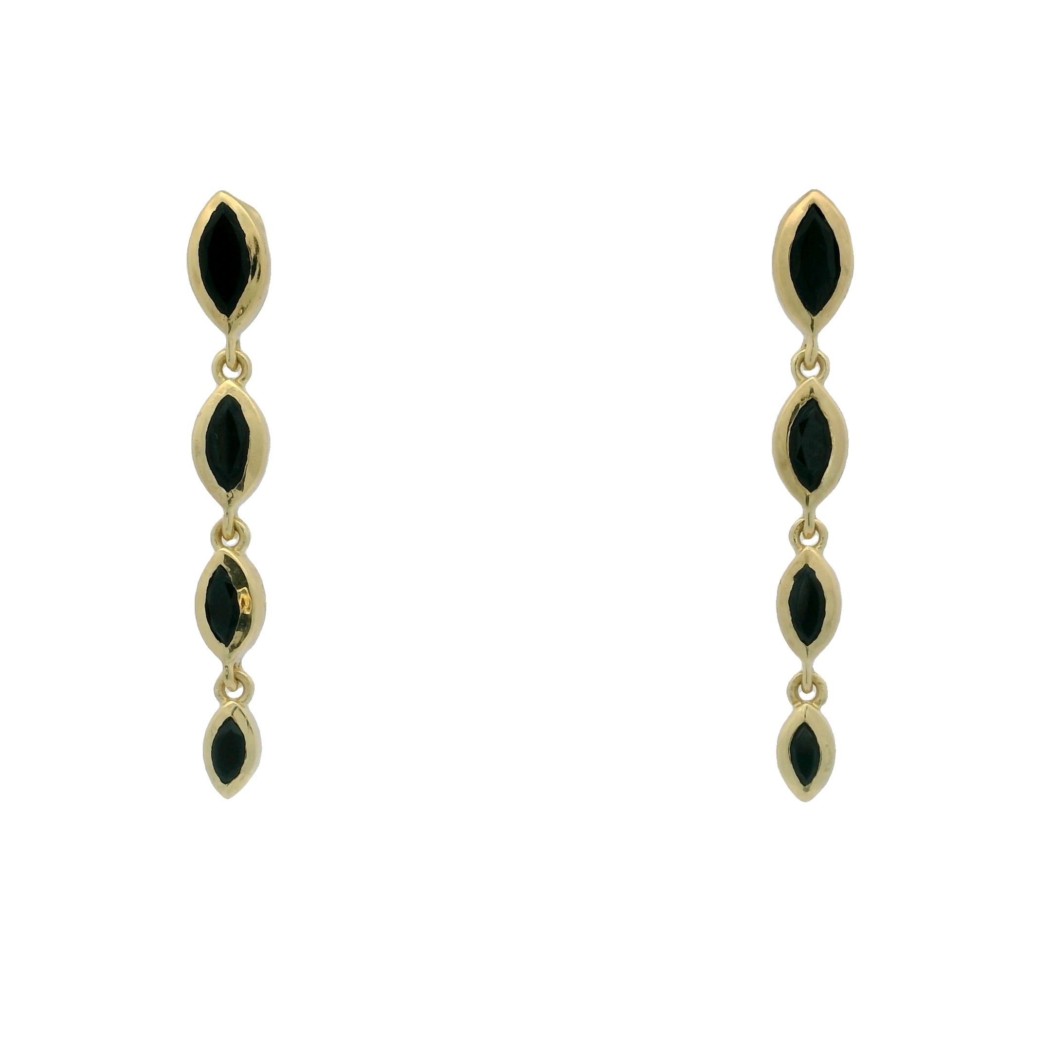 Brass earrings gilded with 18k fine gold and marquise black onyx stones.