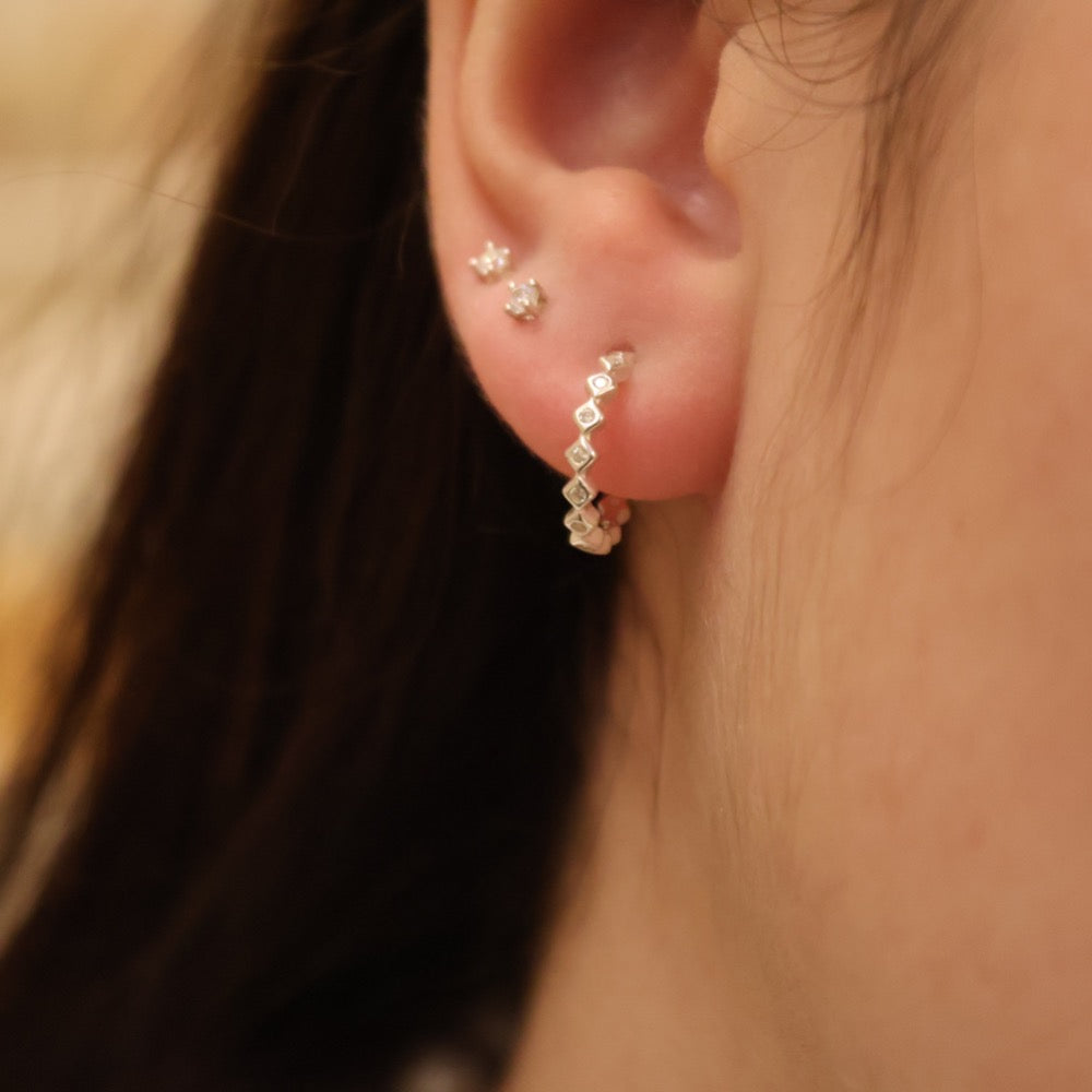 Mini hoop earrings in 925 silver and zircons set in diamonds.