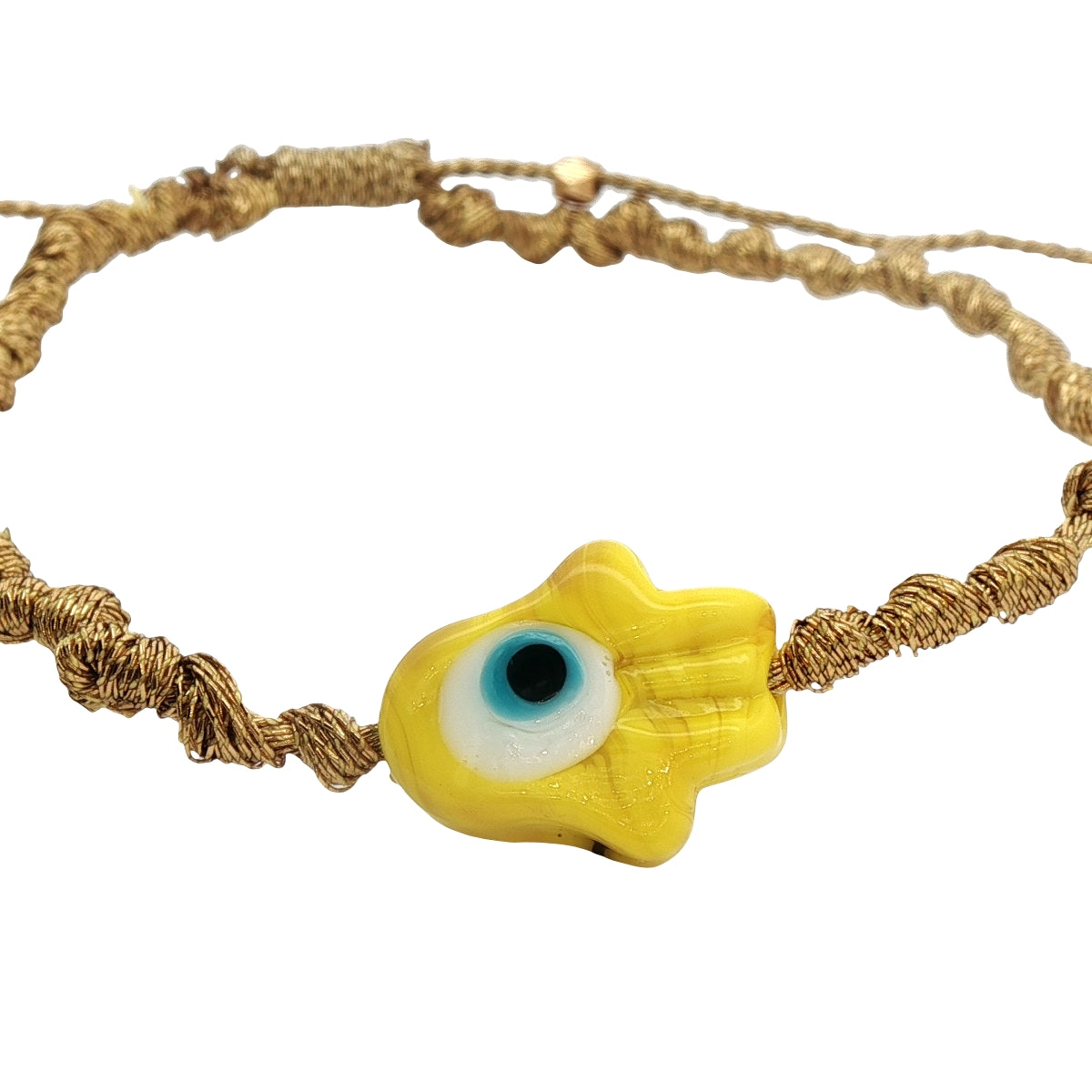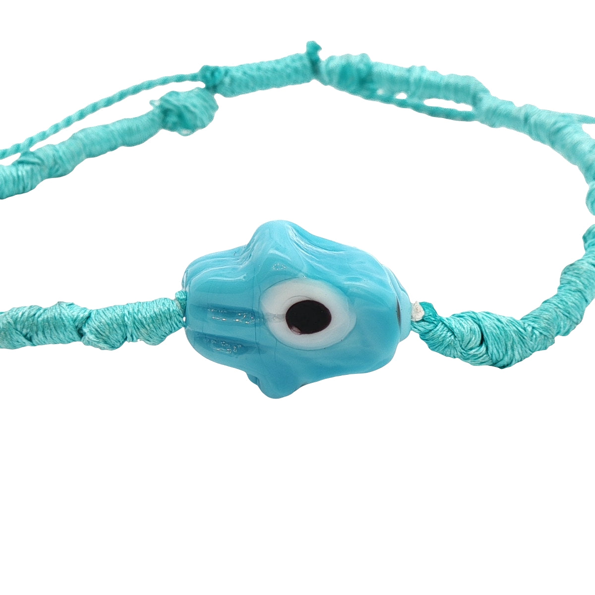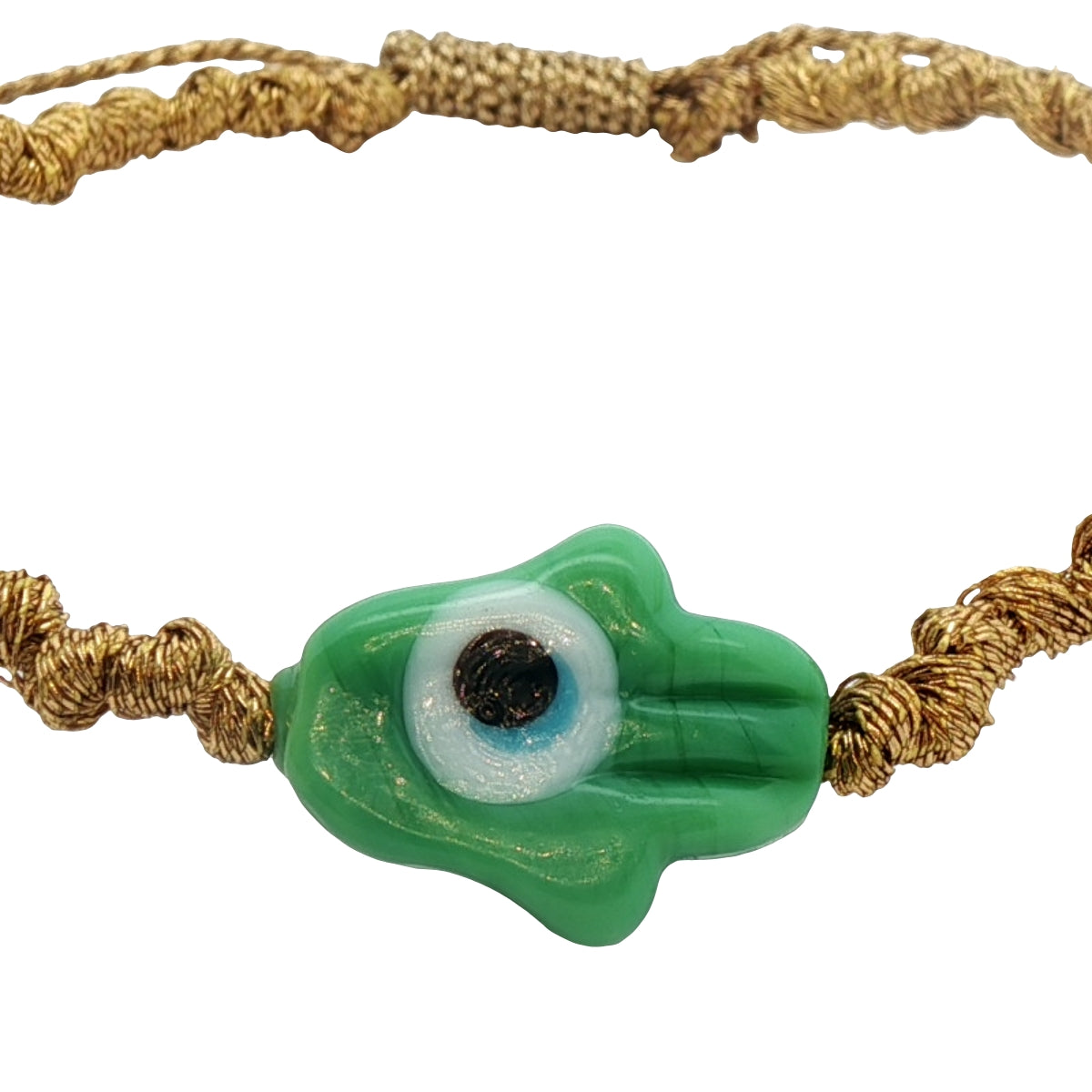 Colorful cord bracelet and blown glass hand of Fatima