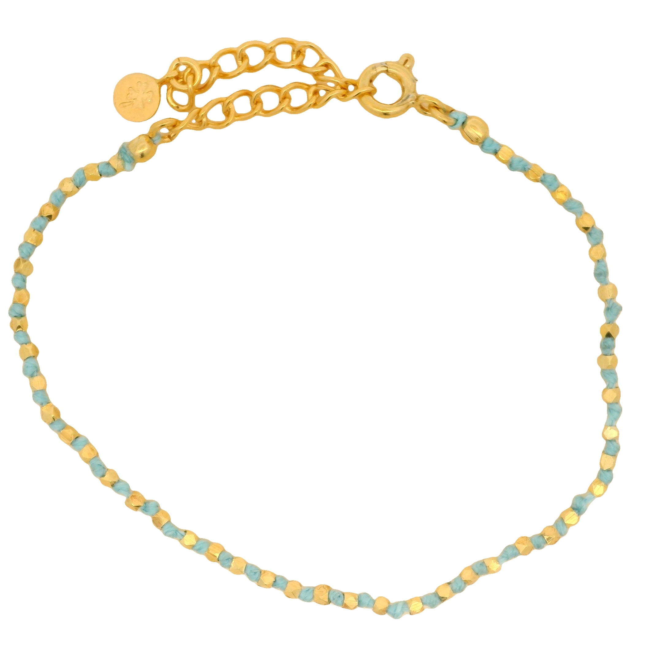 Bracelet doré noeuds en cordon bleu avec perles dorées