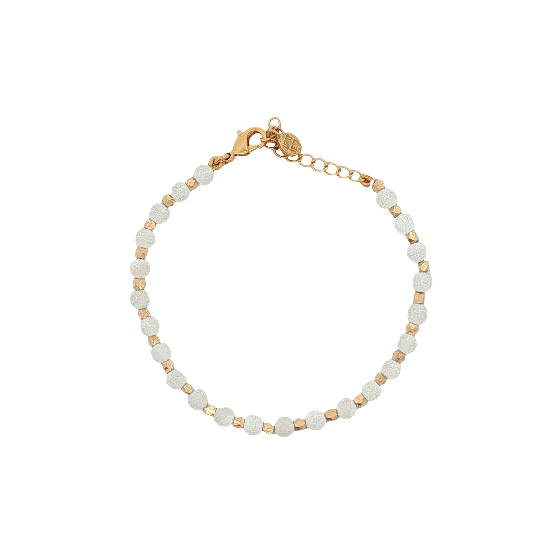Bracelet avec agate blanche séparée par des perles dorées facettées