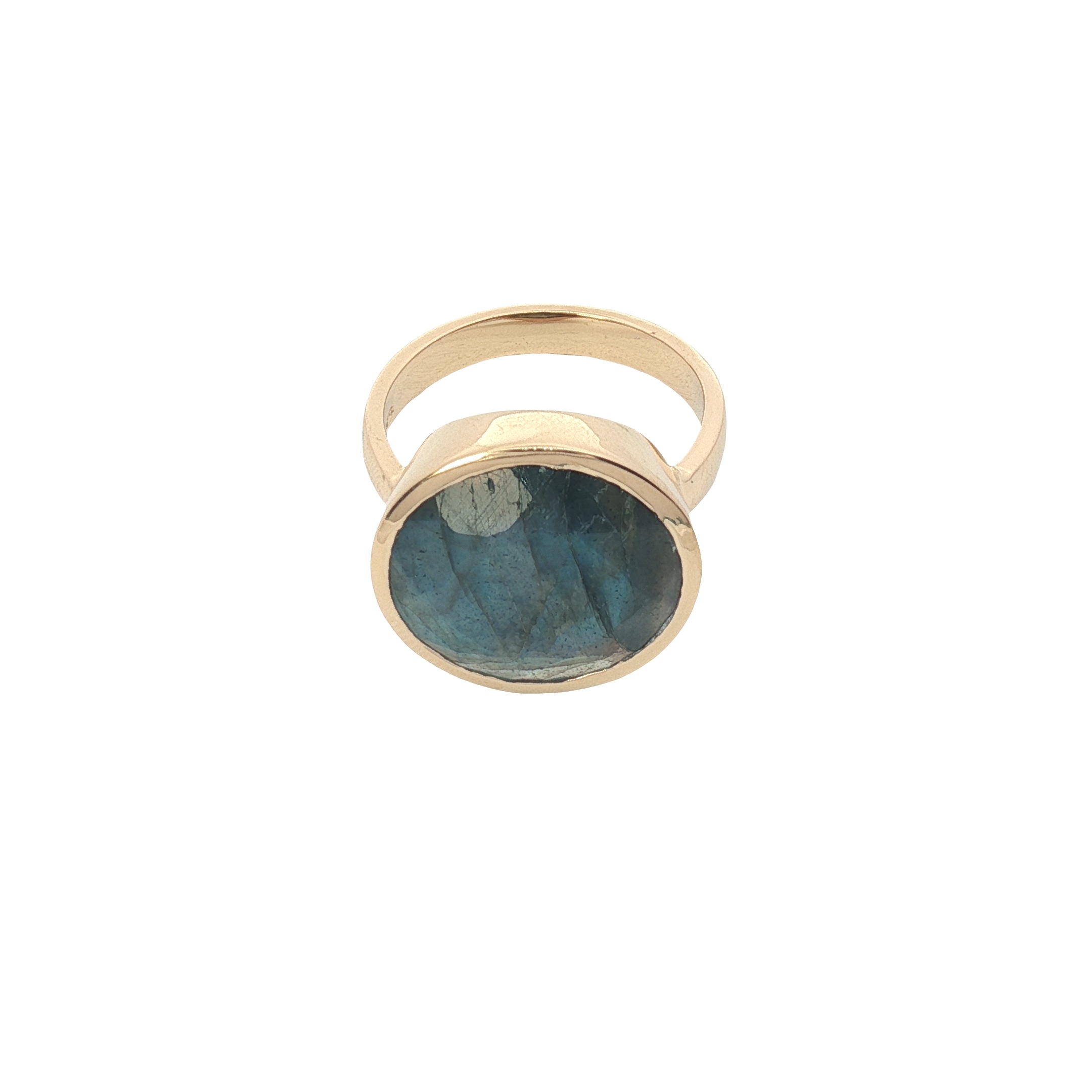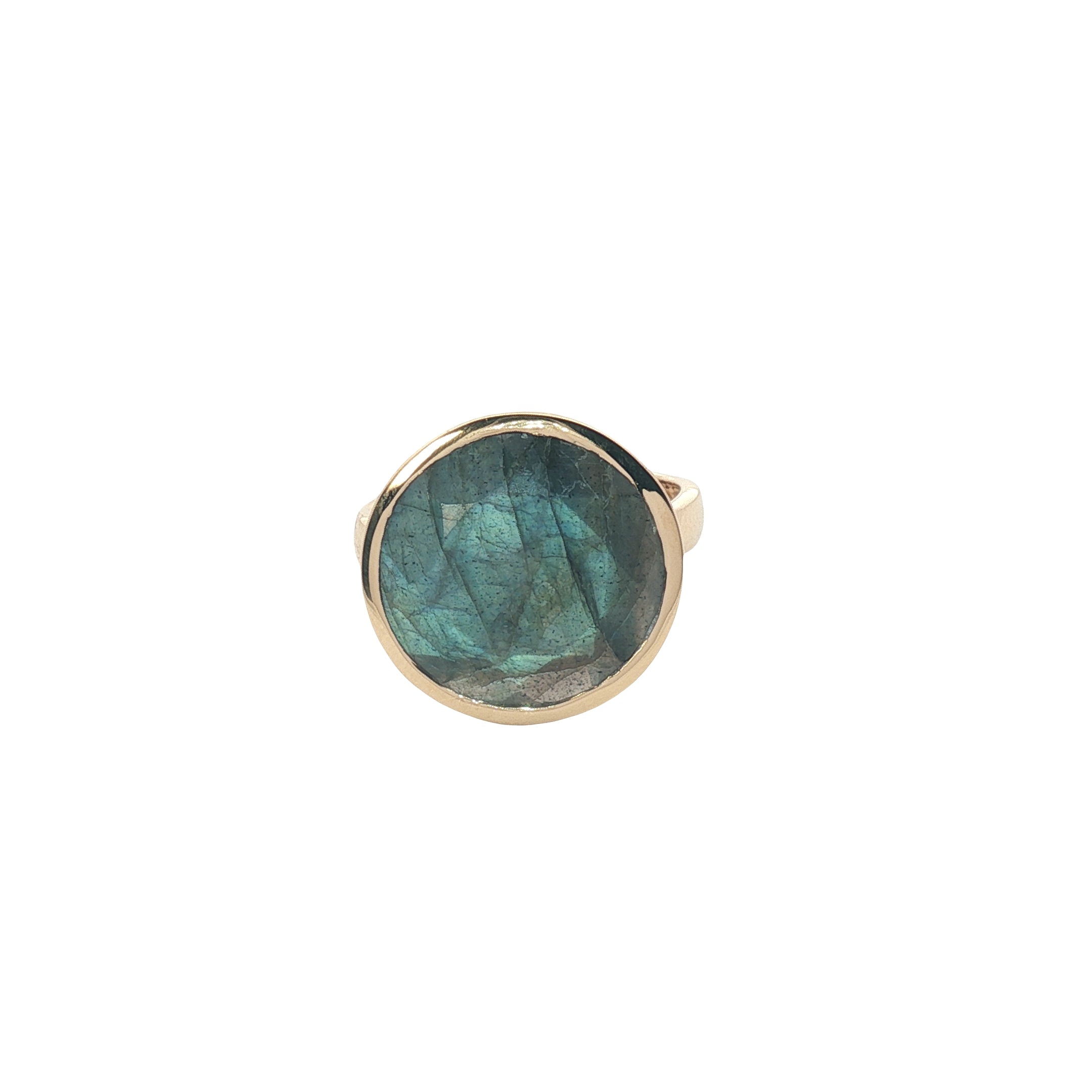Pierre ronde facettée en labradorite serti clos : 16 mm
