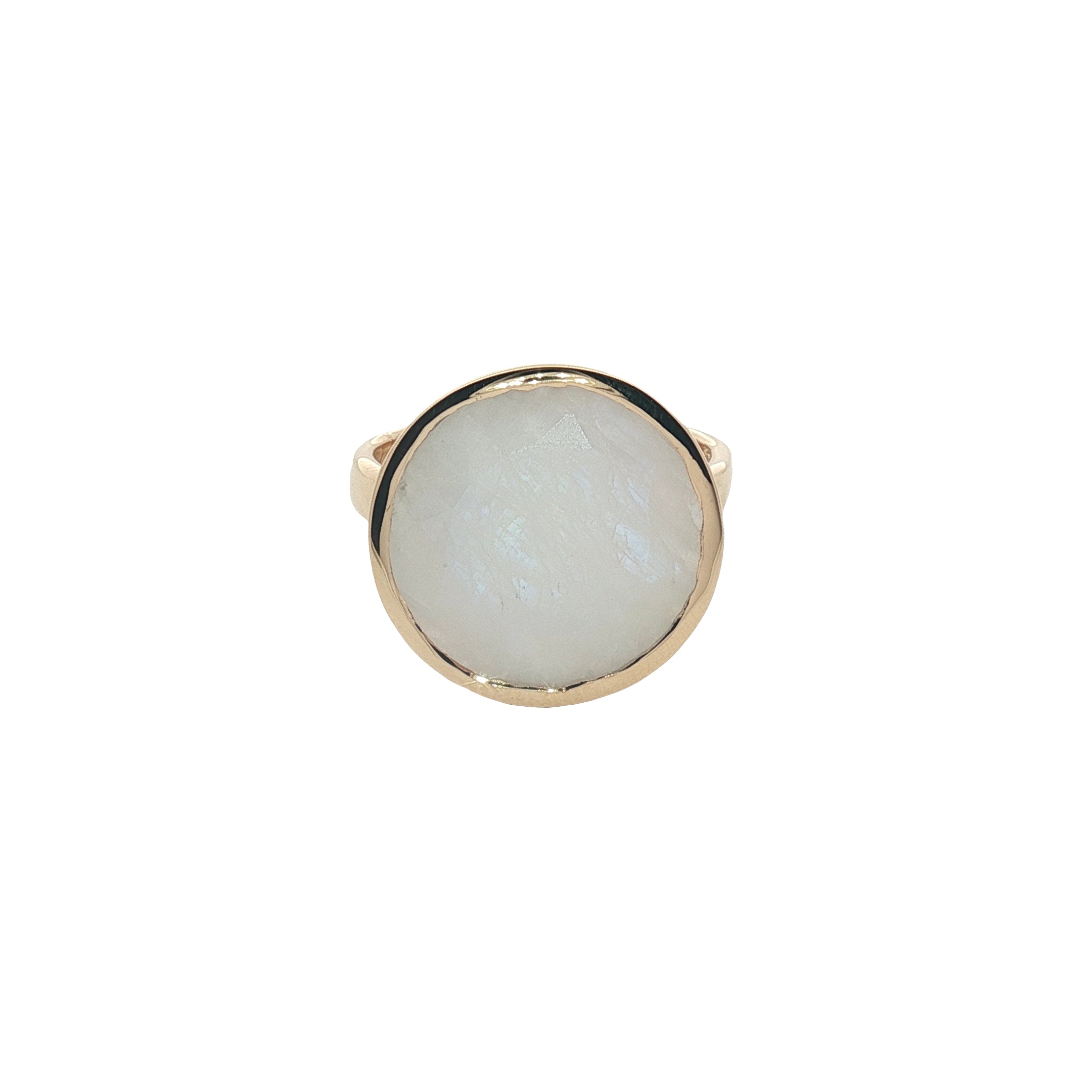 Pierre ronde facettée en pierre de lune serti clos : 16 mm