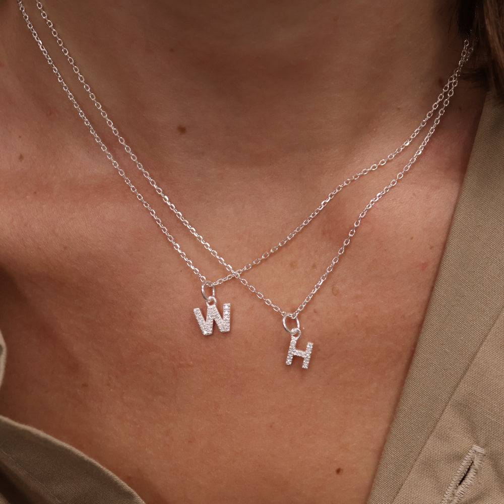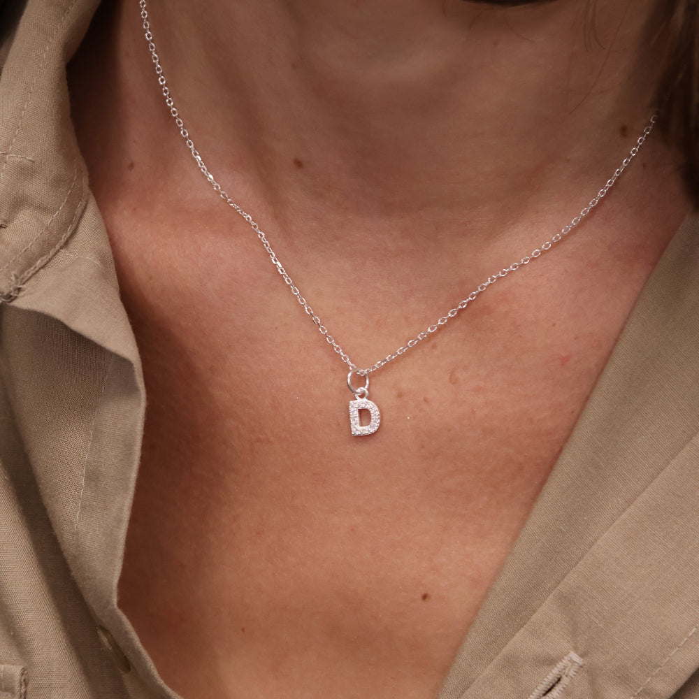 925 silver necklace with small zircon letter