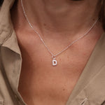 Necklace in recycled 925 silver and letter pendant decorated with white zircons.