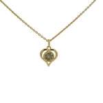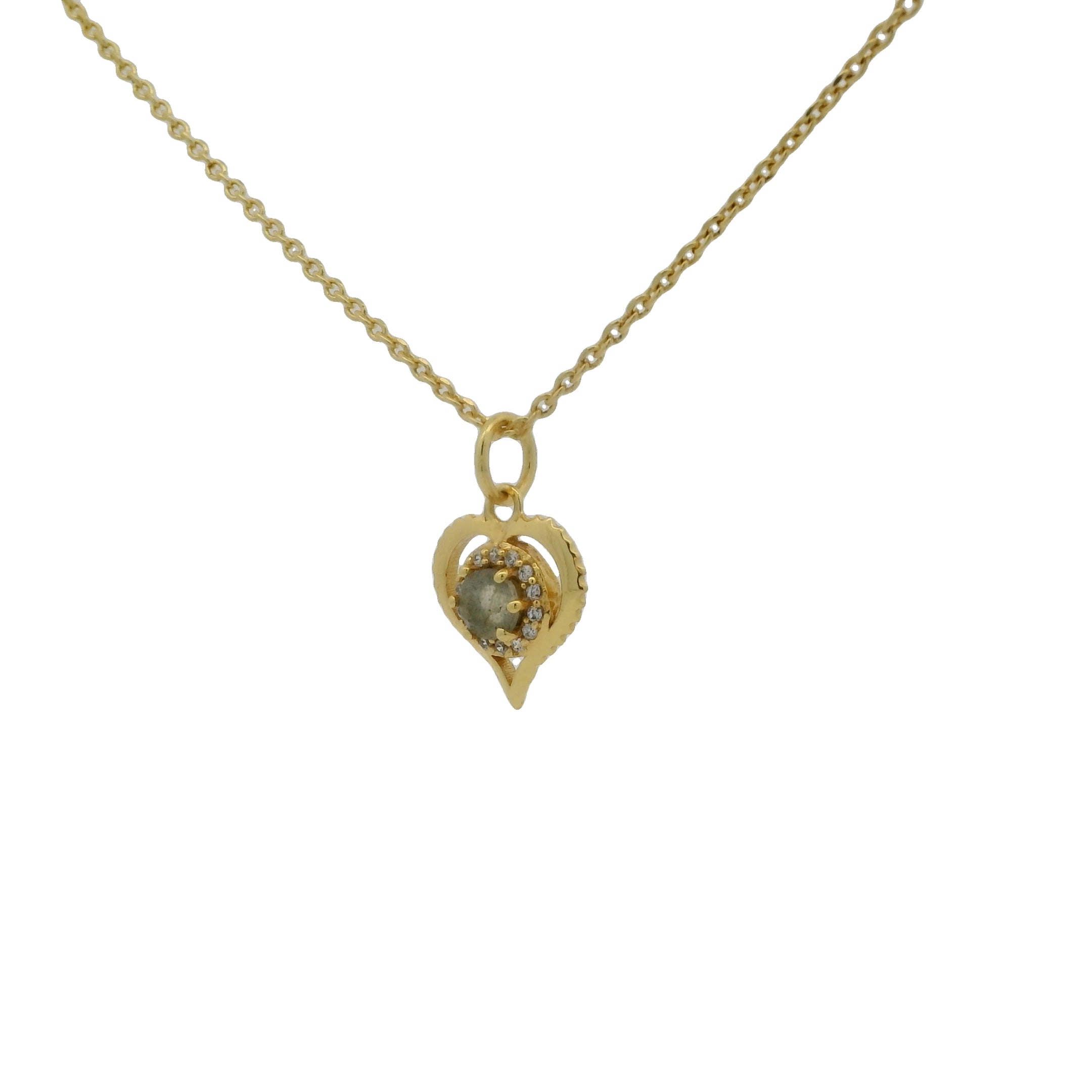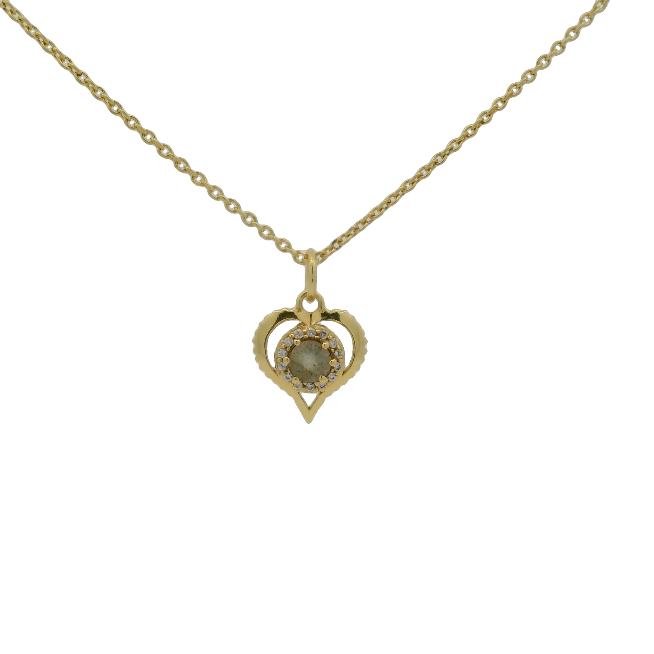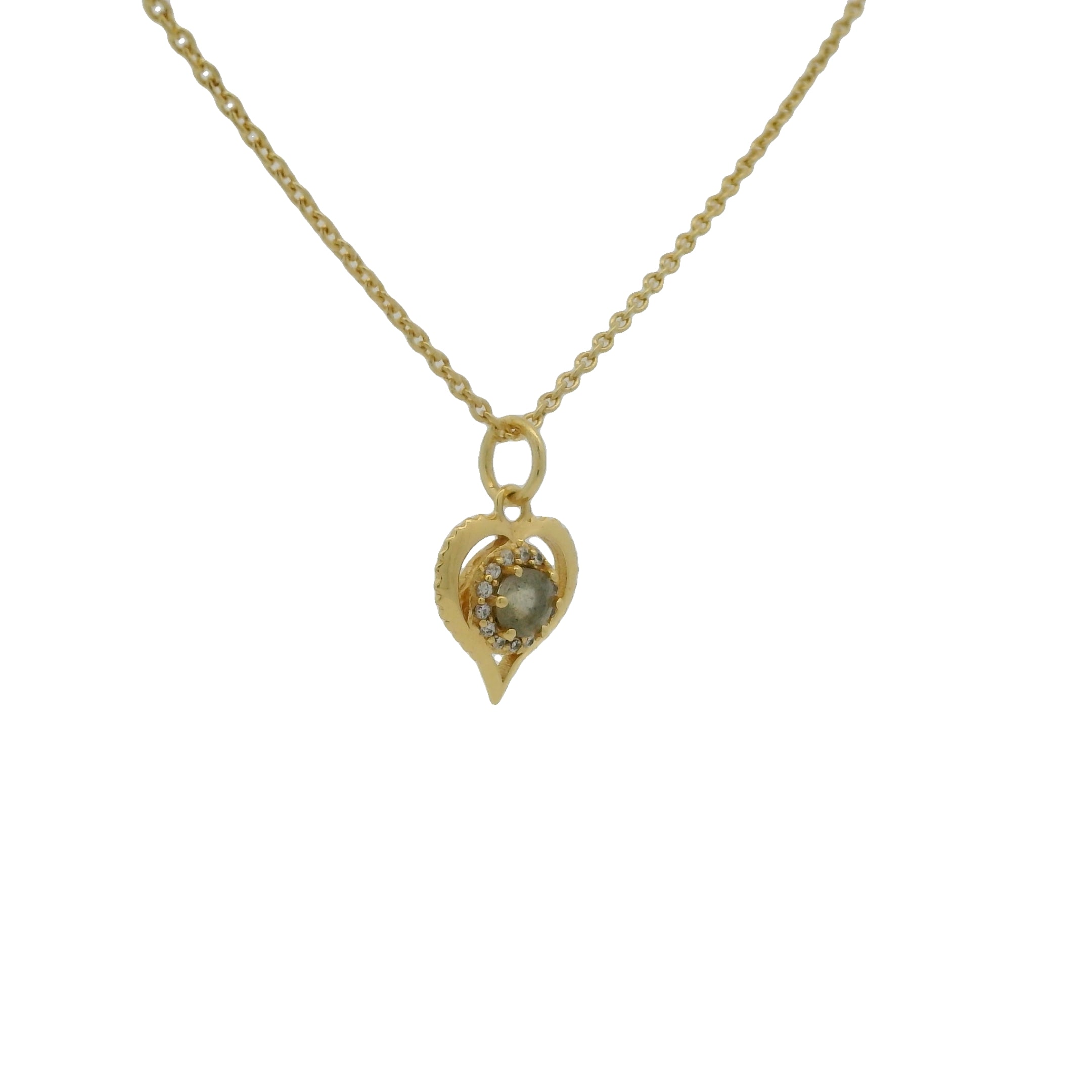 Necklace in brass gilded with 18k fine gold and heart pendant decorated with a stone and zircons. The outline of the heart is slightly serrated.