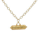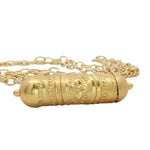 Collier doré talisman indien gravure fleur 60cm