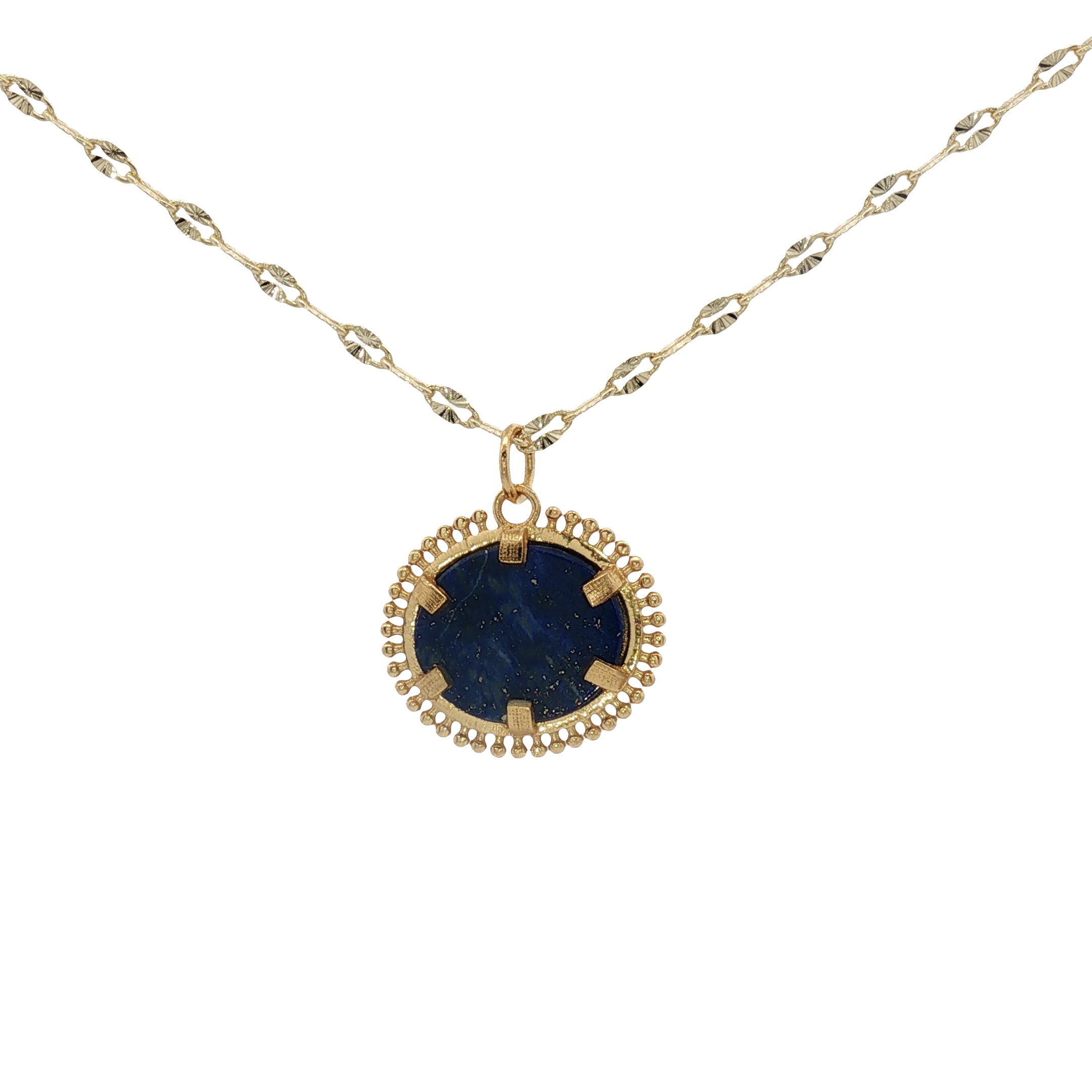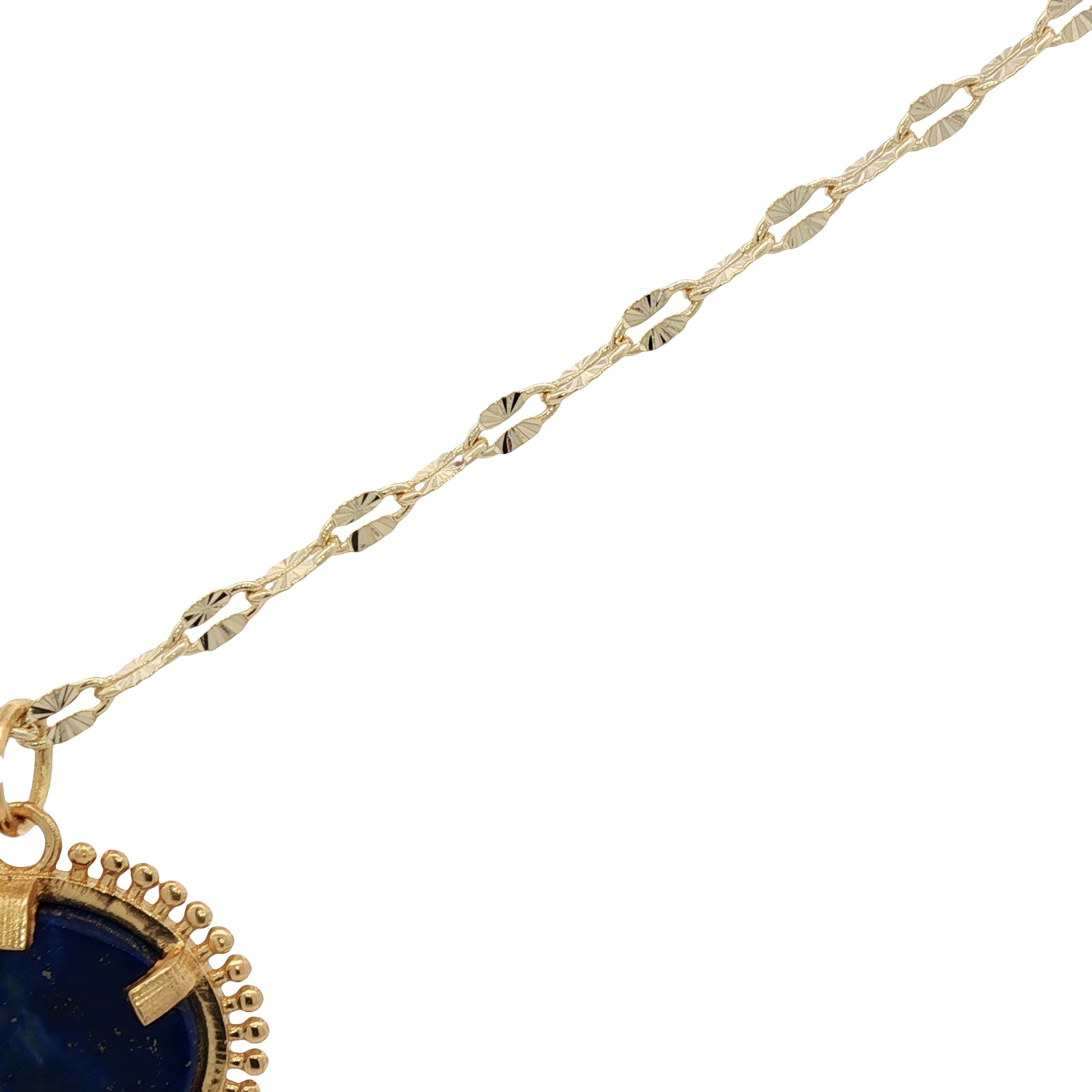 Collier doré médaillon ovale en lapis lazulis 50 cm