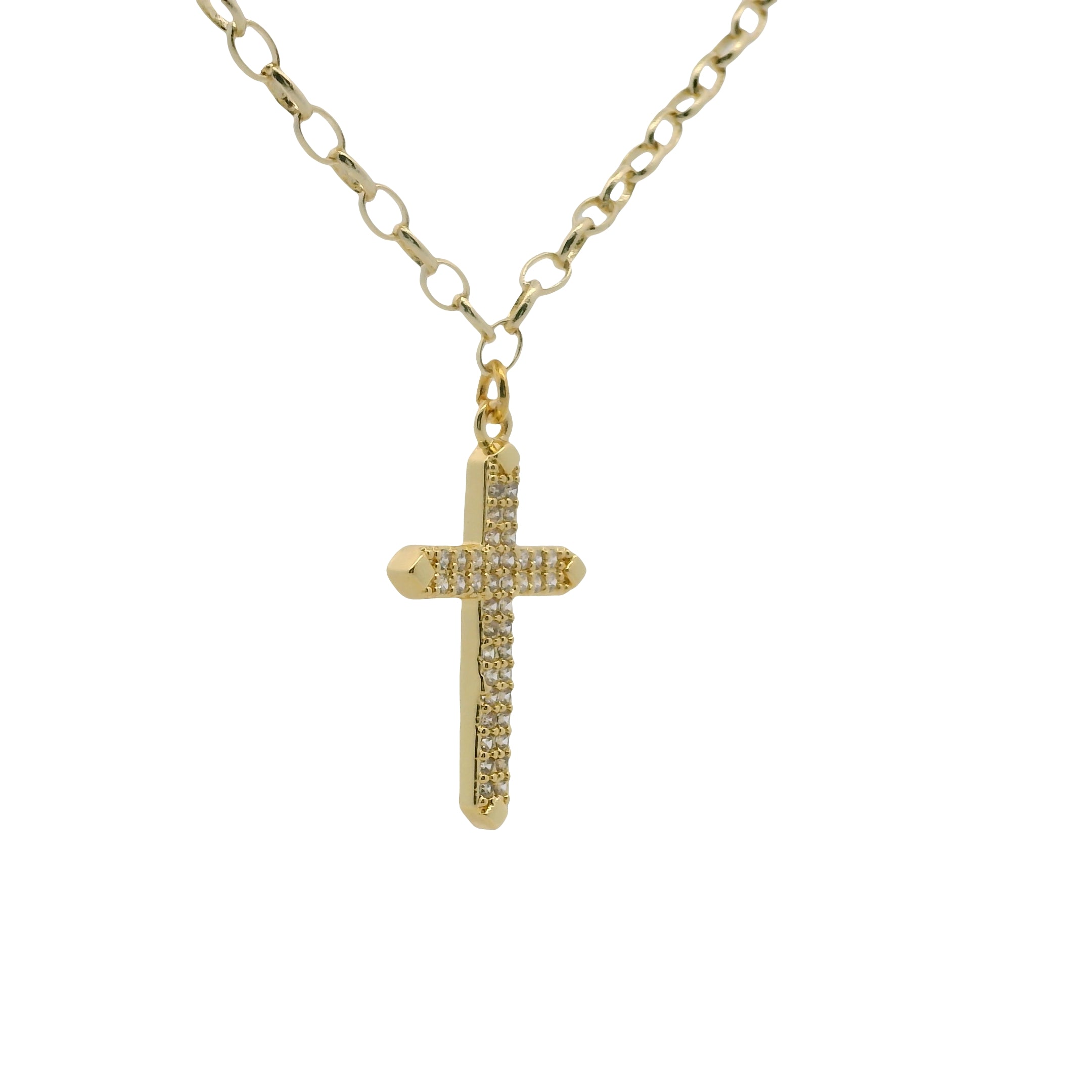 Collier doré maille jaseron et croix sertie de zircons blancs 50cm