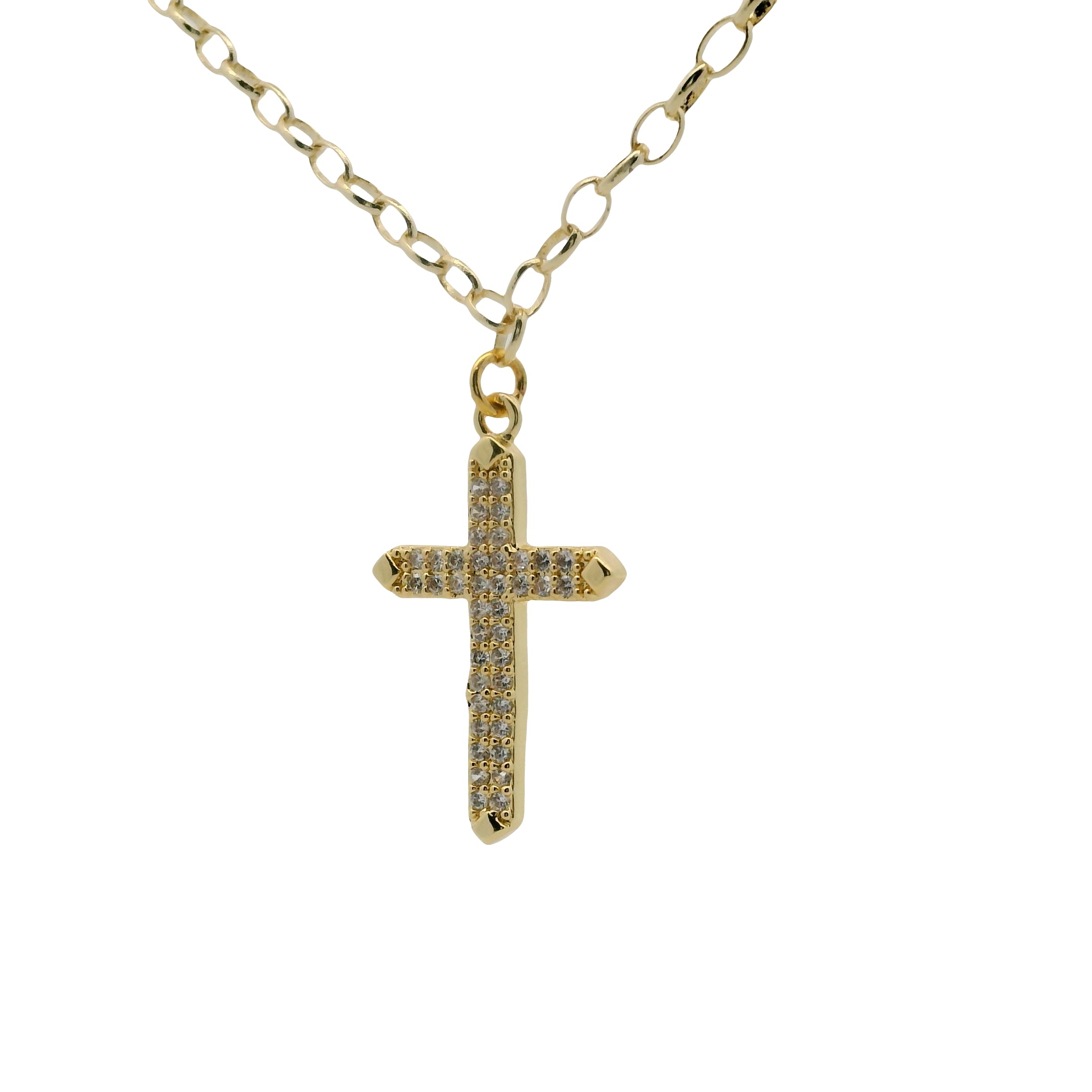 Pendentif croix sertie de zircons blancs en pavé : 2,5cm x 1,5cm