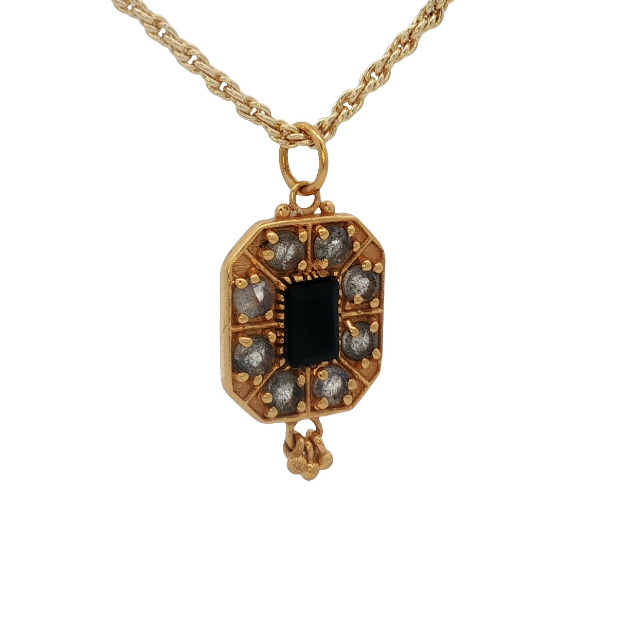 Collier doré médaille octogone avec onyx noire et labradorite 50 cm