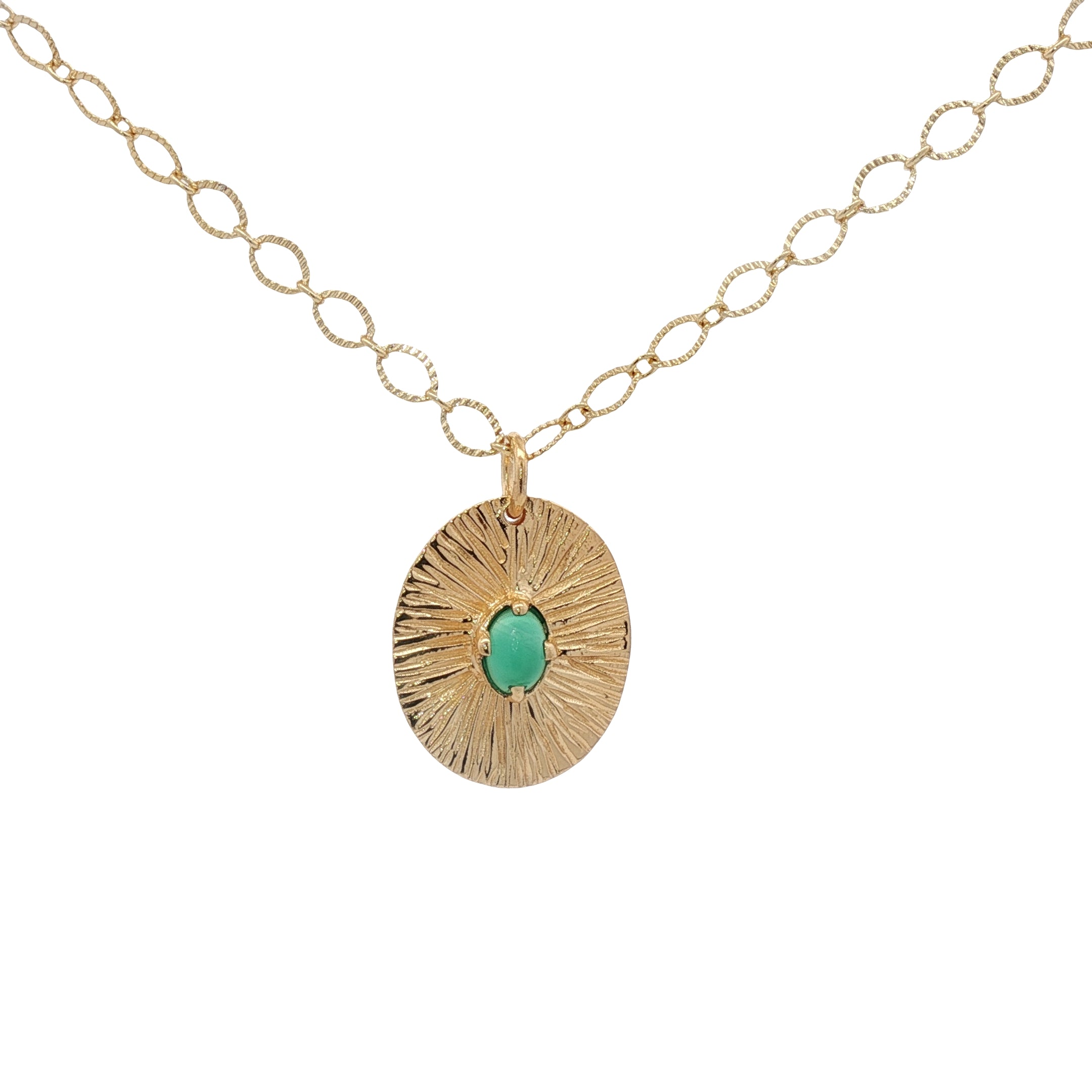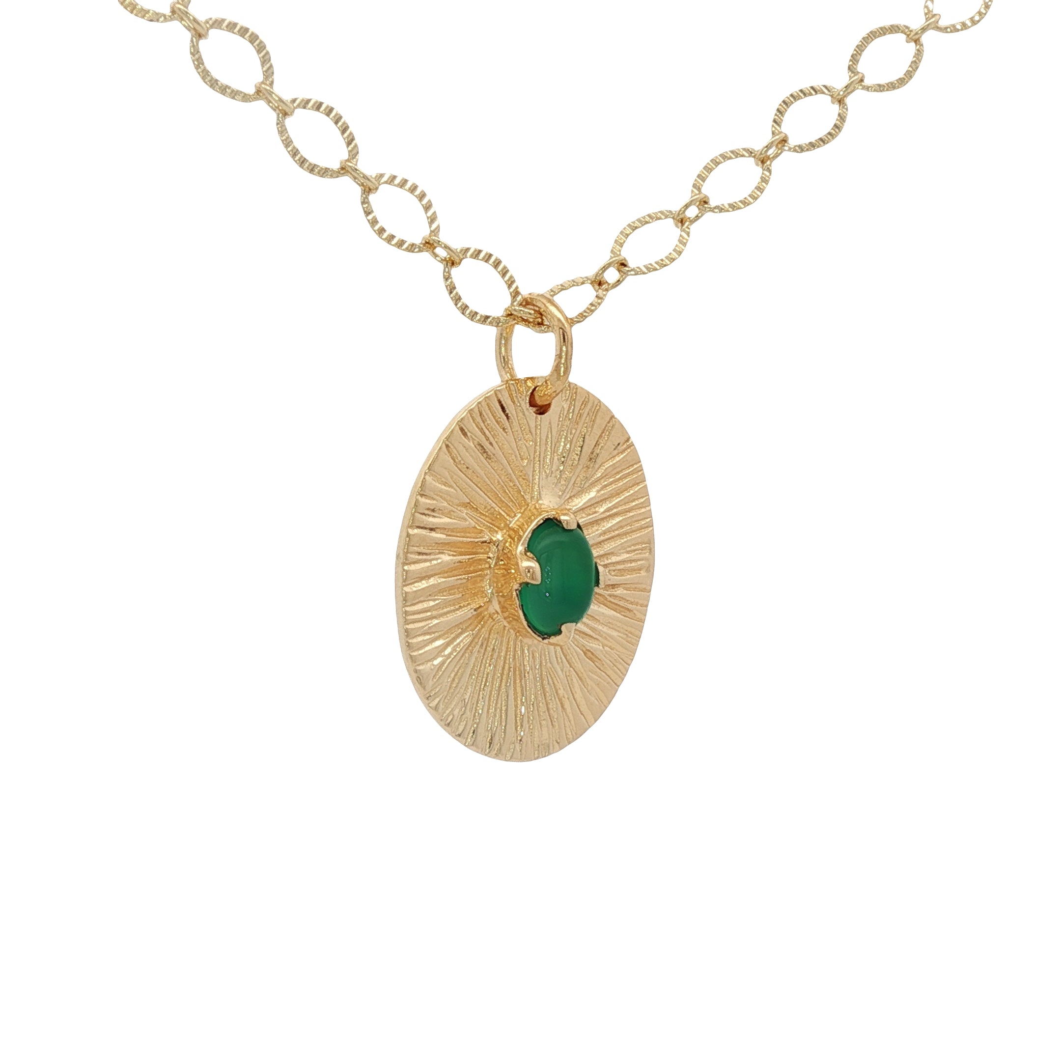 Collier doré médaillon ovale strié onyx verte 50 cm
