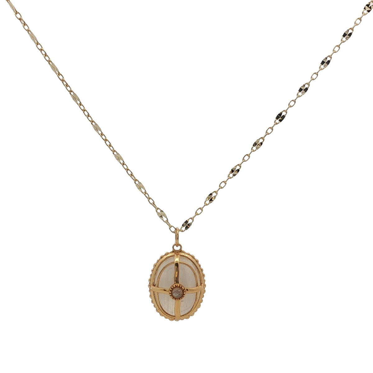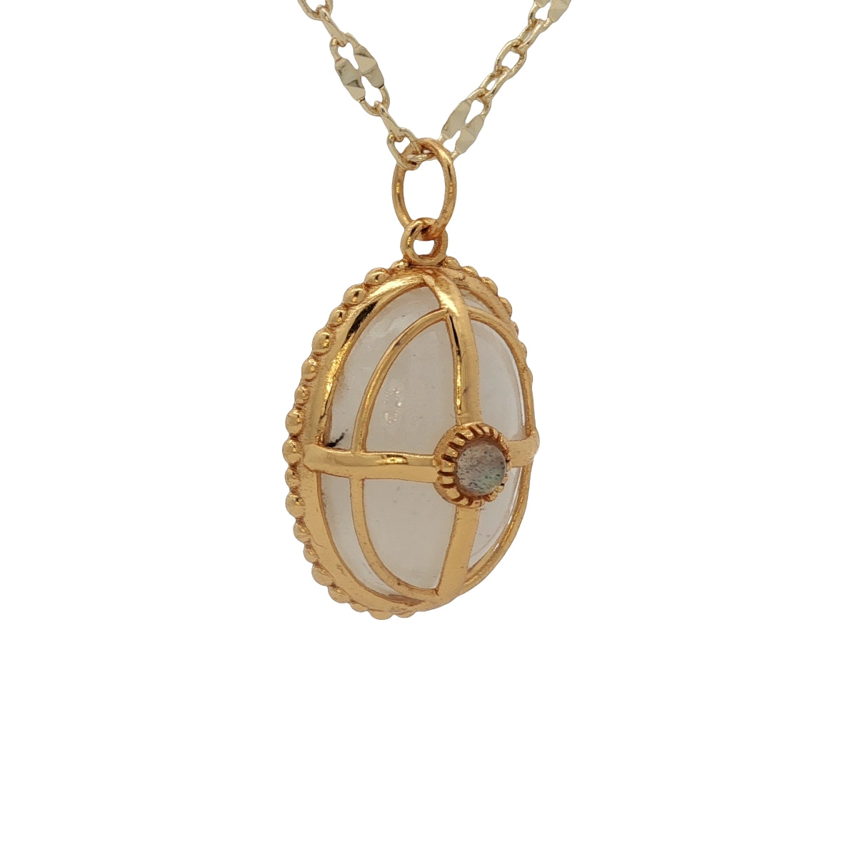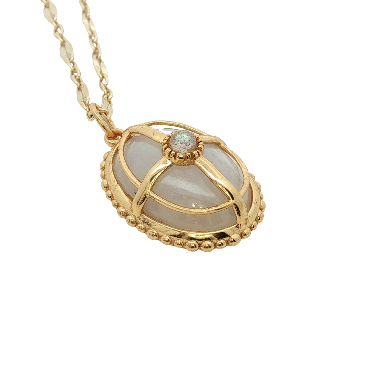 Collier doré original pendentif ovale pierre de lune et cage 50 cm