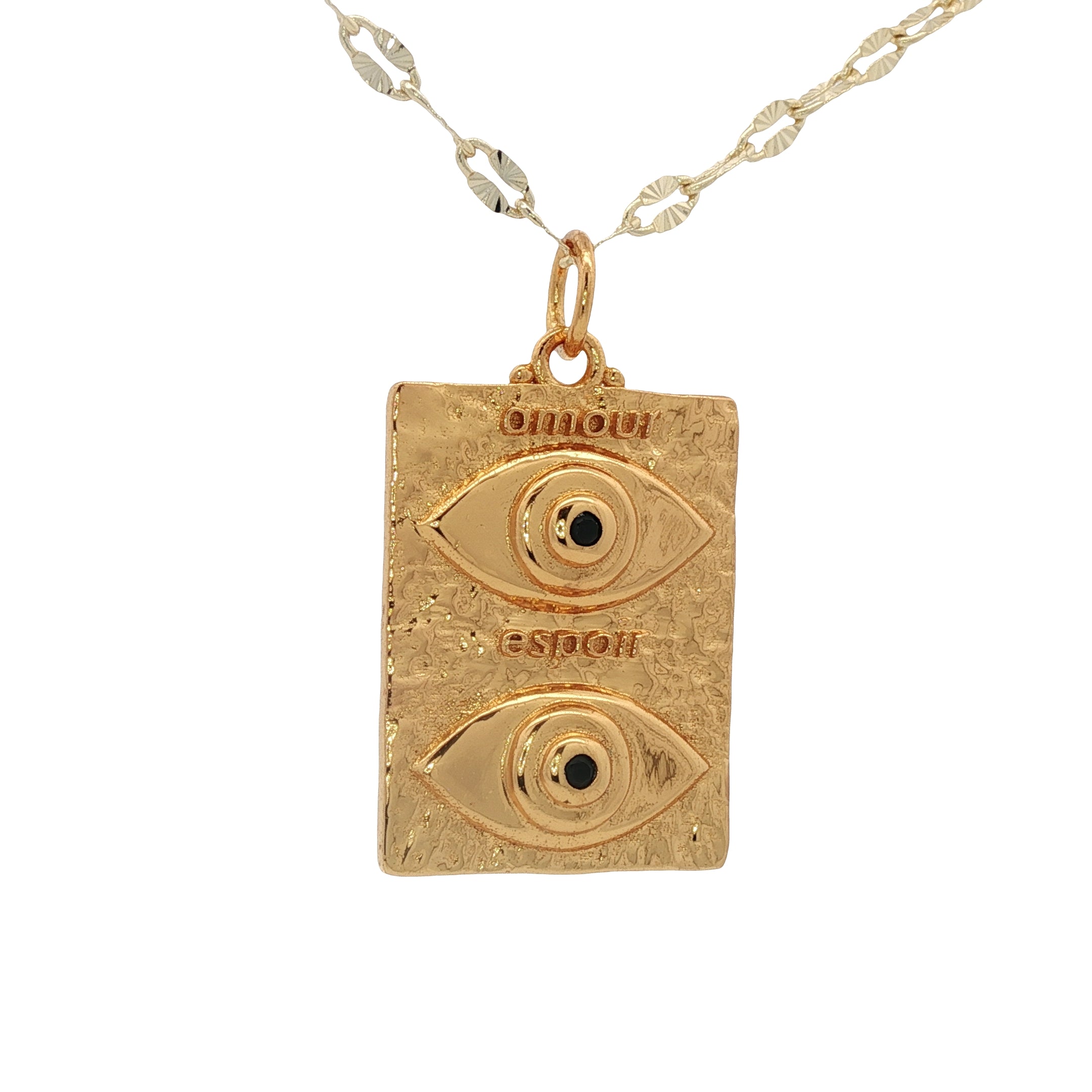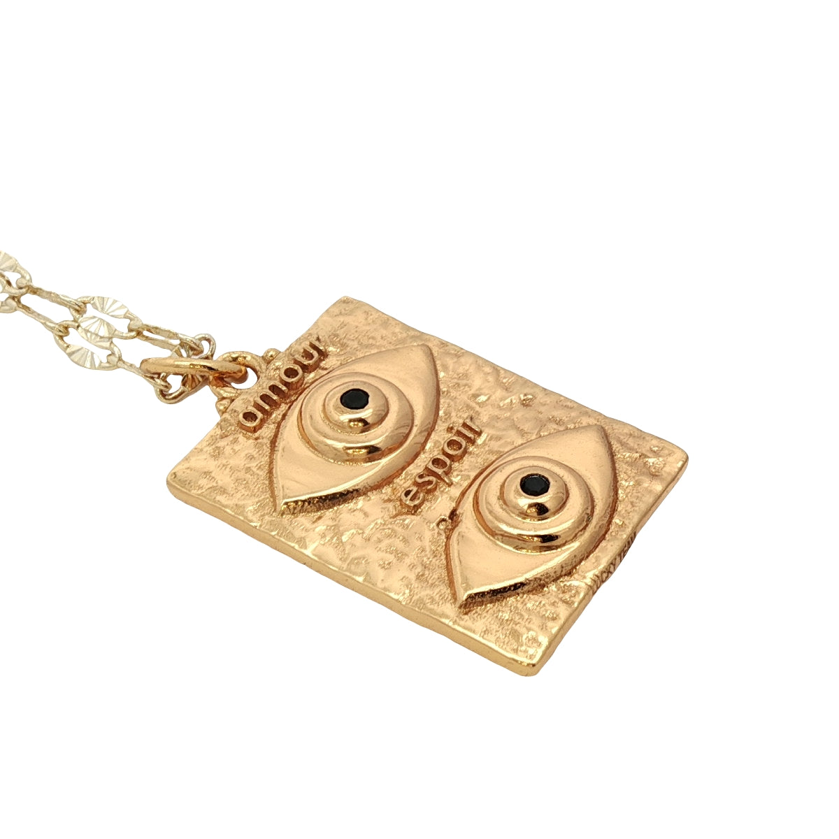 Collier doré magnifique plaque double oeil avec zircons 50 cm
