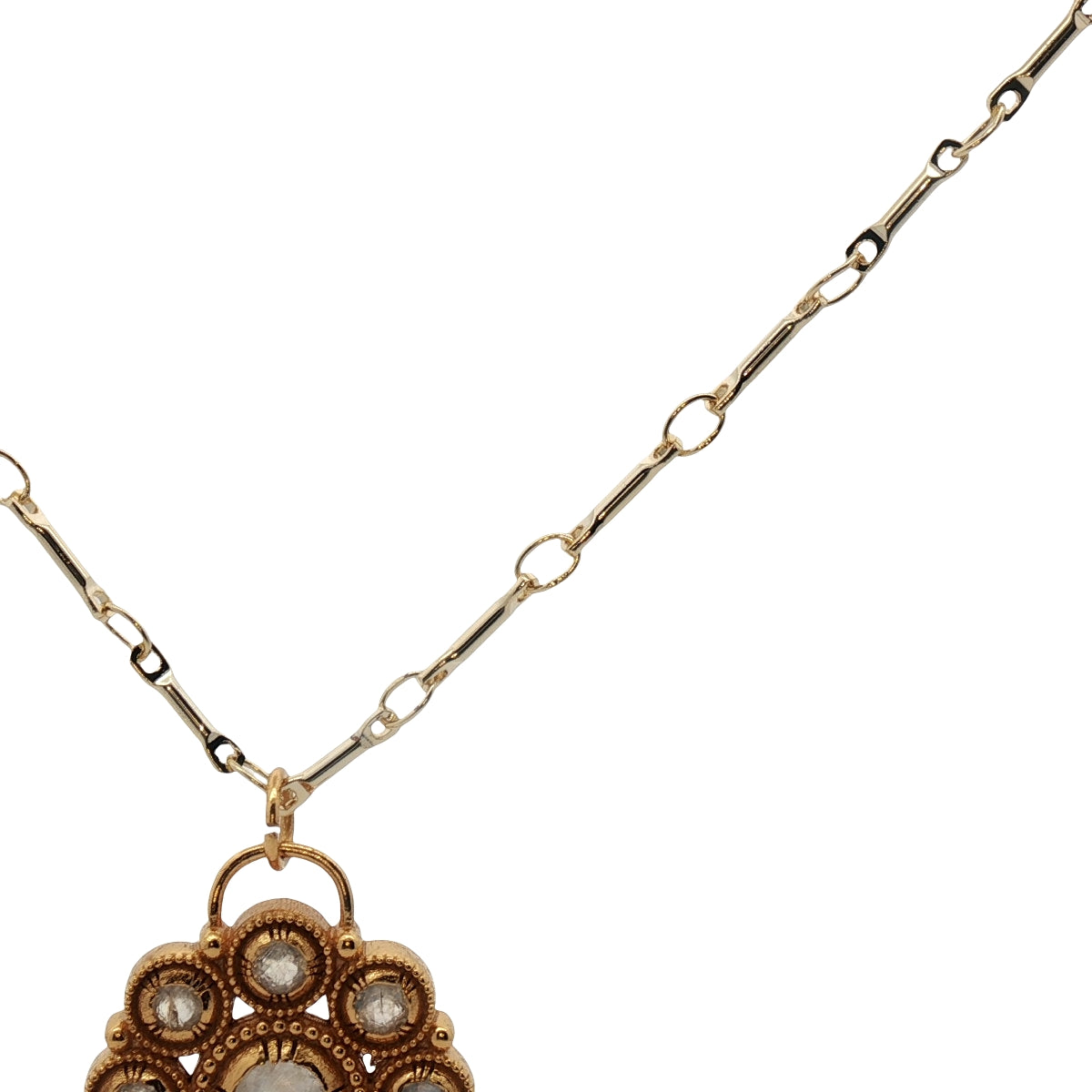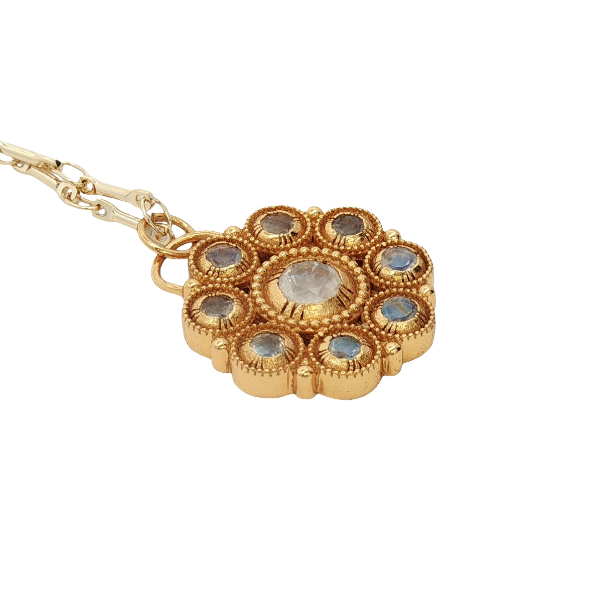 Collier doré médaillon fleur avec pierre de lune 50 cm