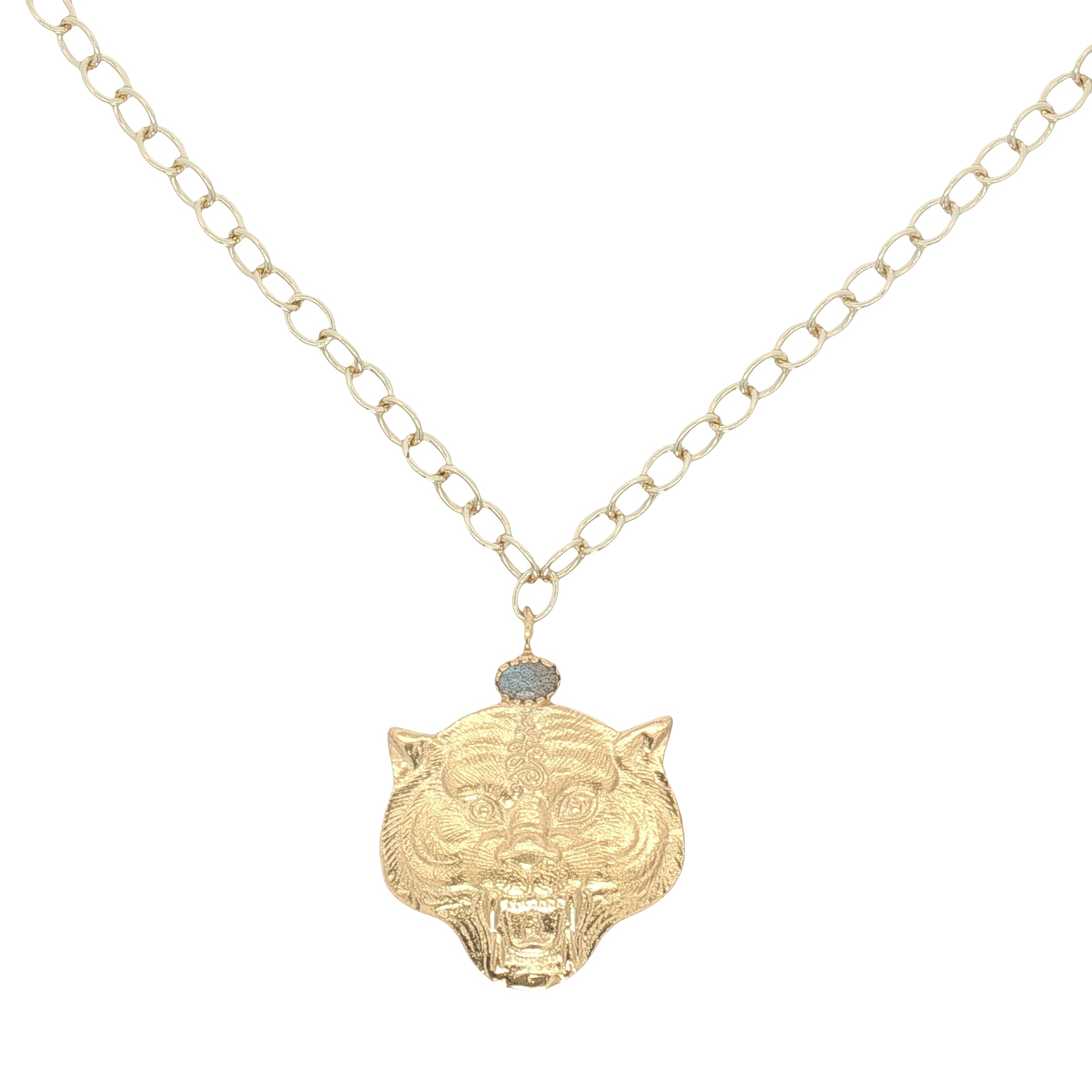 Collier doré tête de tigre avec labradorite 50 cm