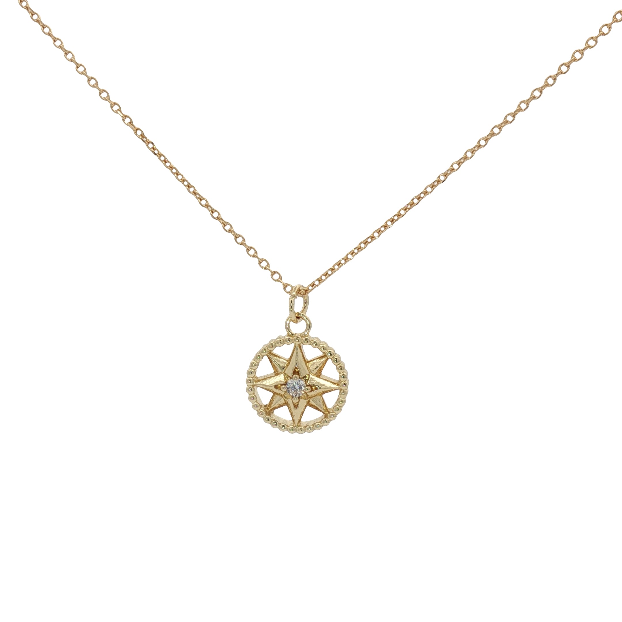 Collier doré médaille étoile des vents avec zircons 42 cm
