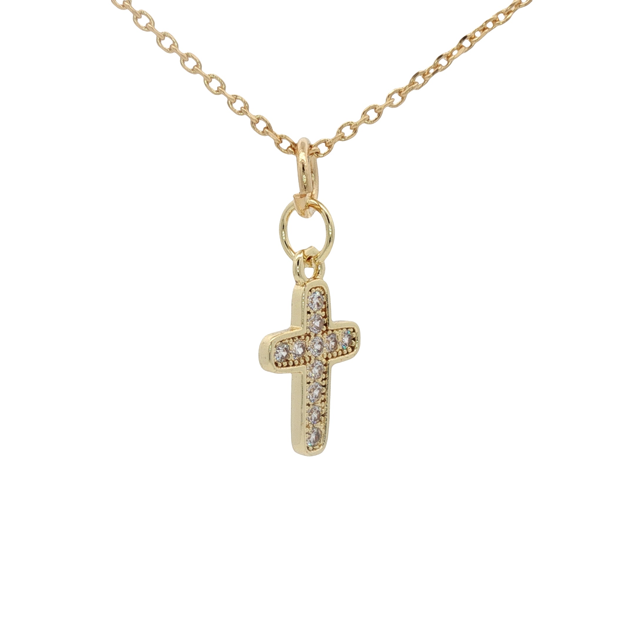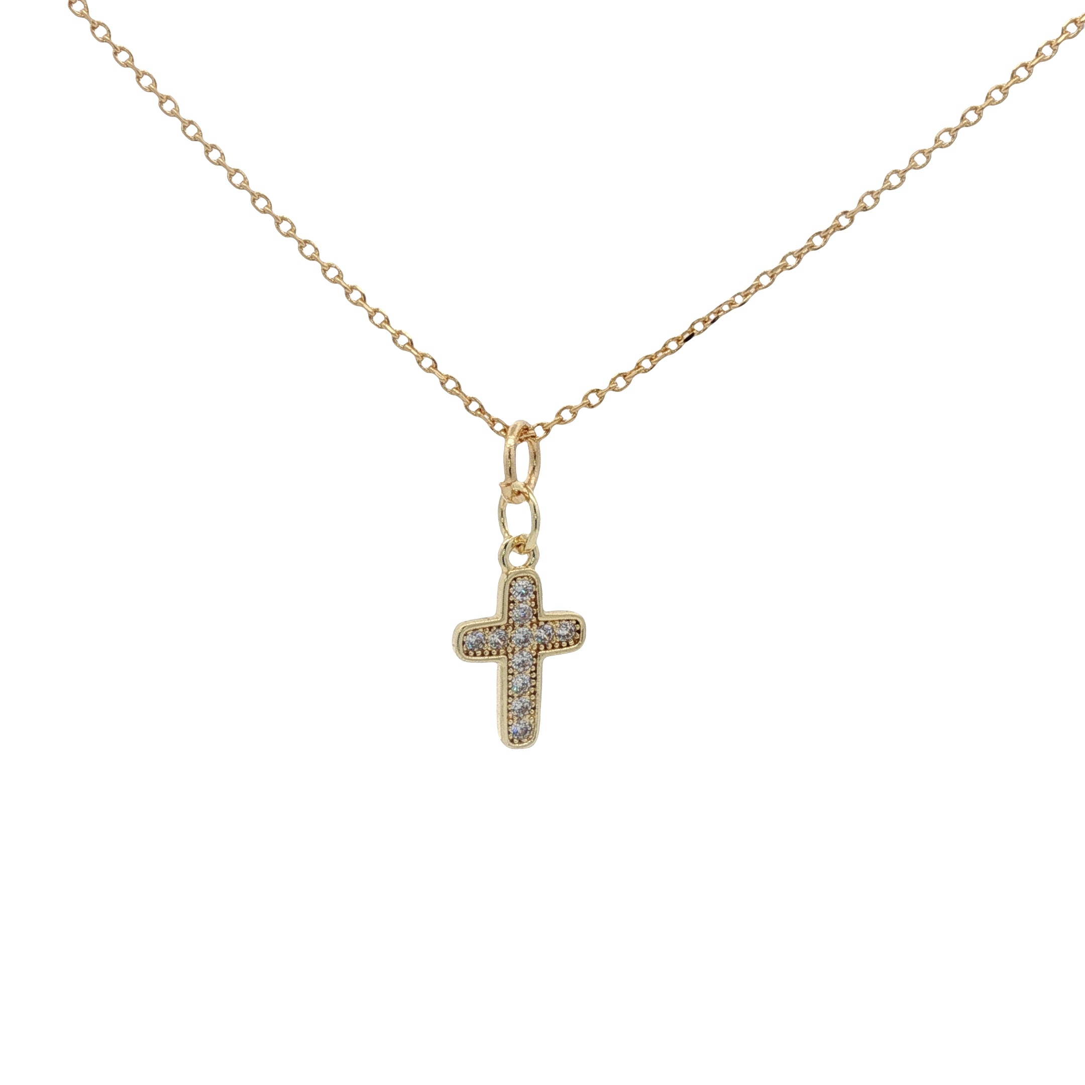 Collier doré croix avec zircons 42 cm