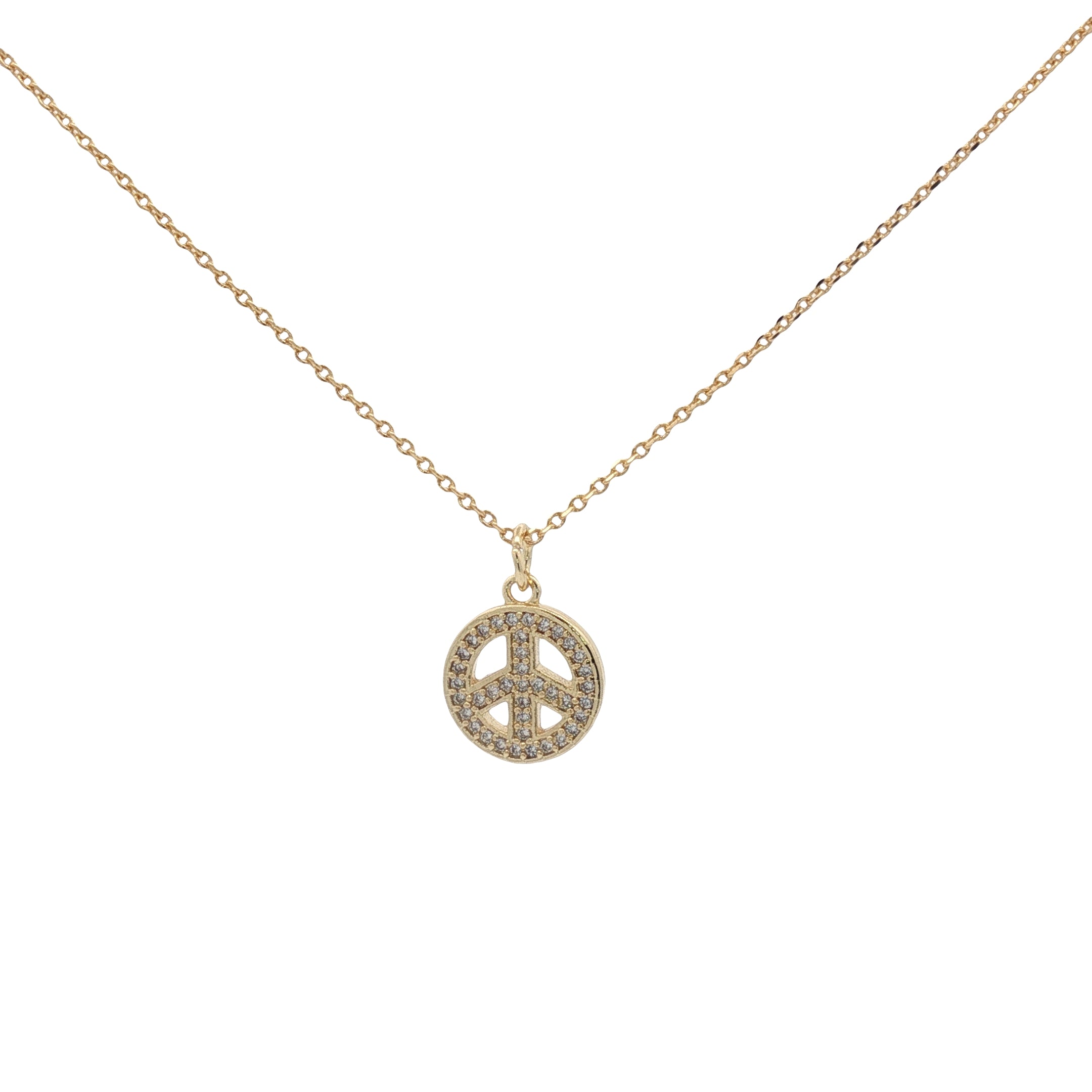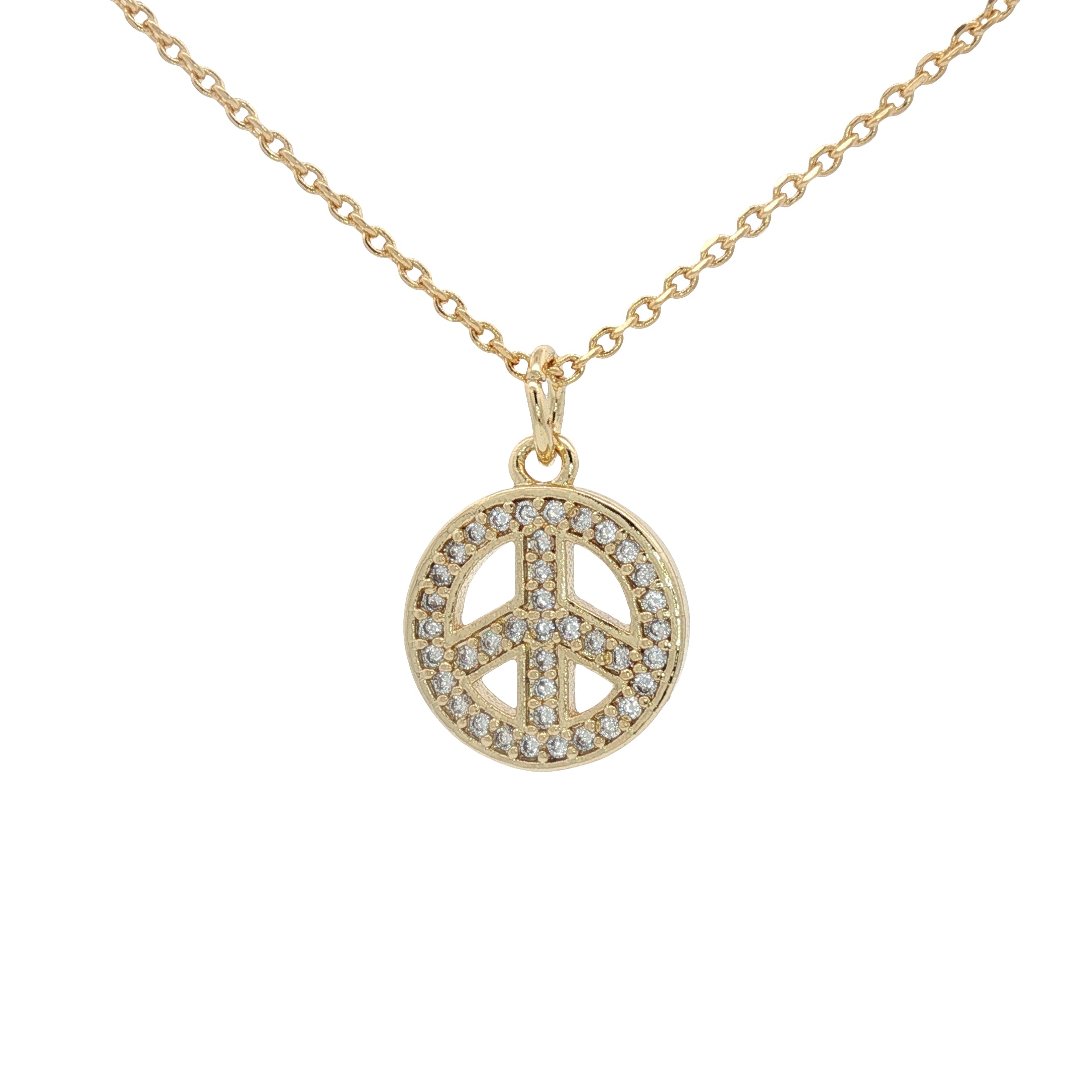 Collier doré peace and love avec zircons 42 cm