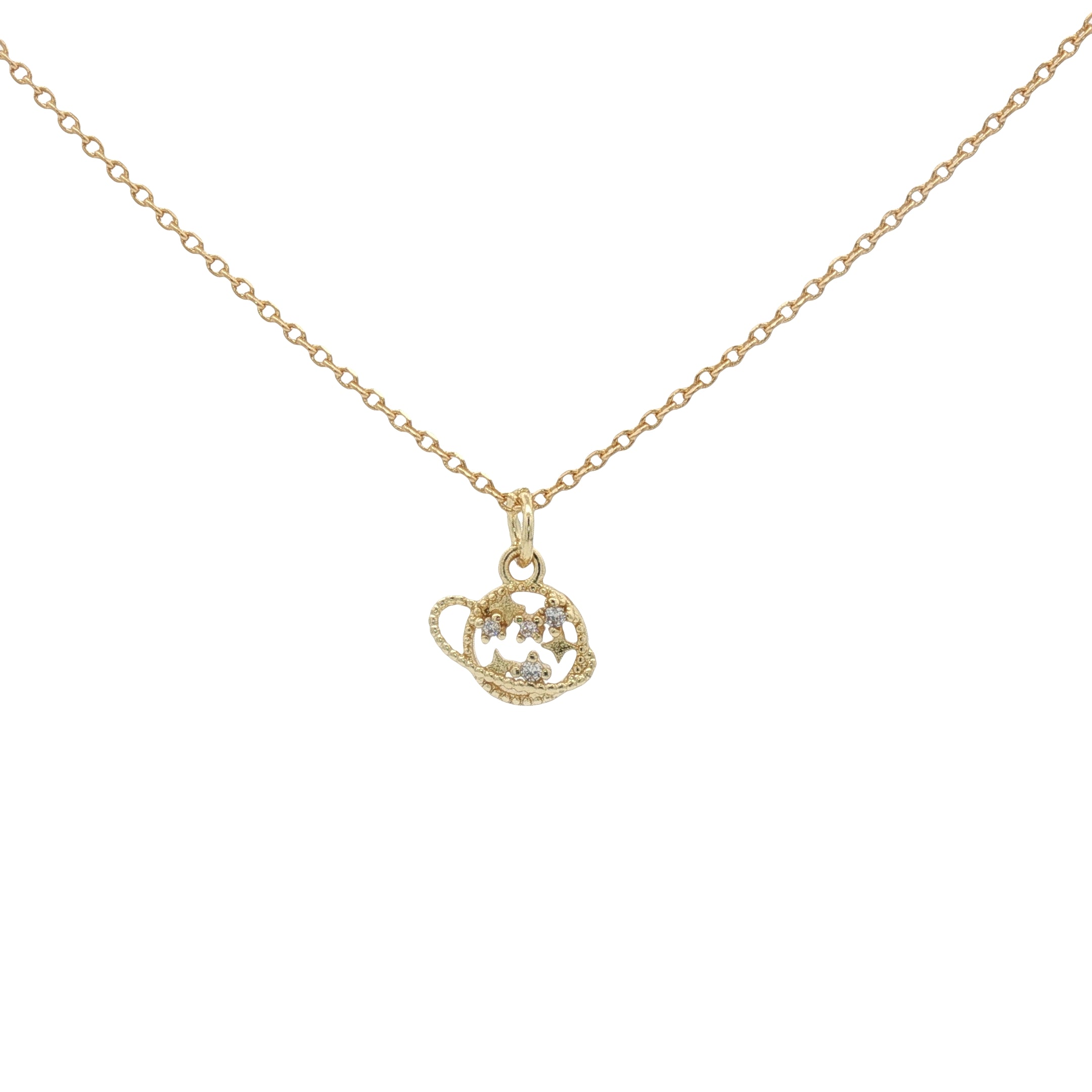 Collier doré planète saturne avec étoiles et zircons 42 cm