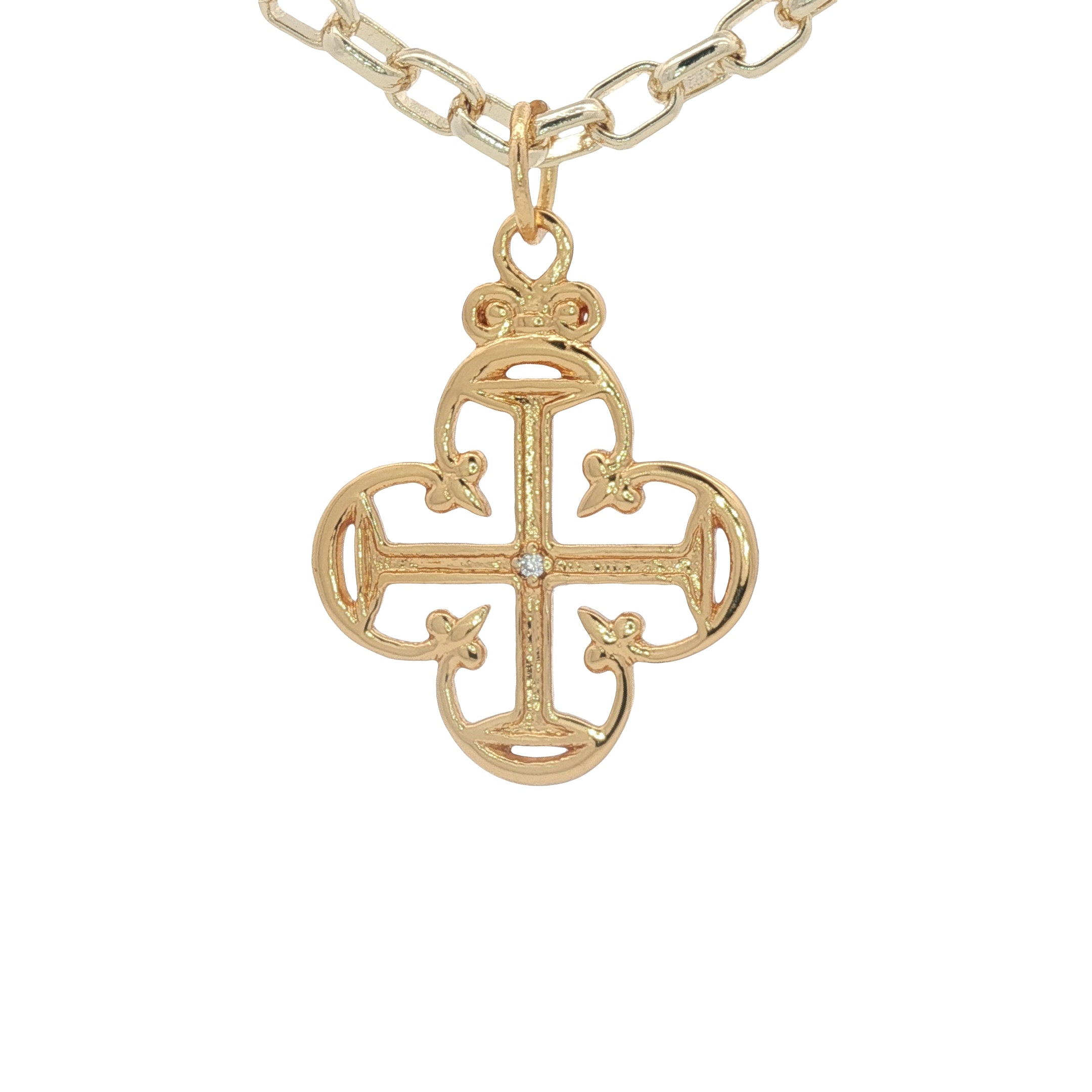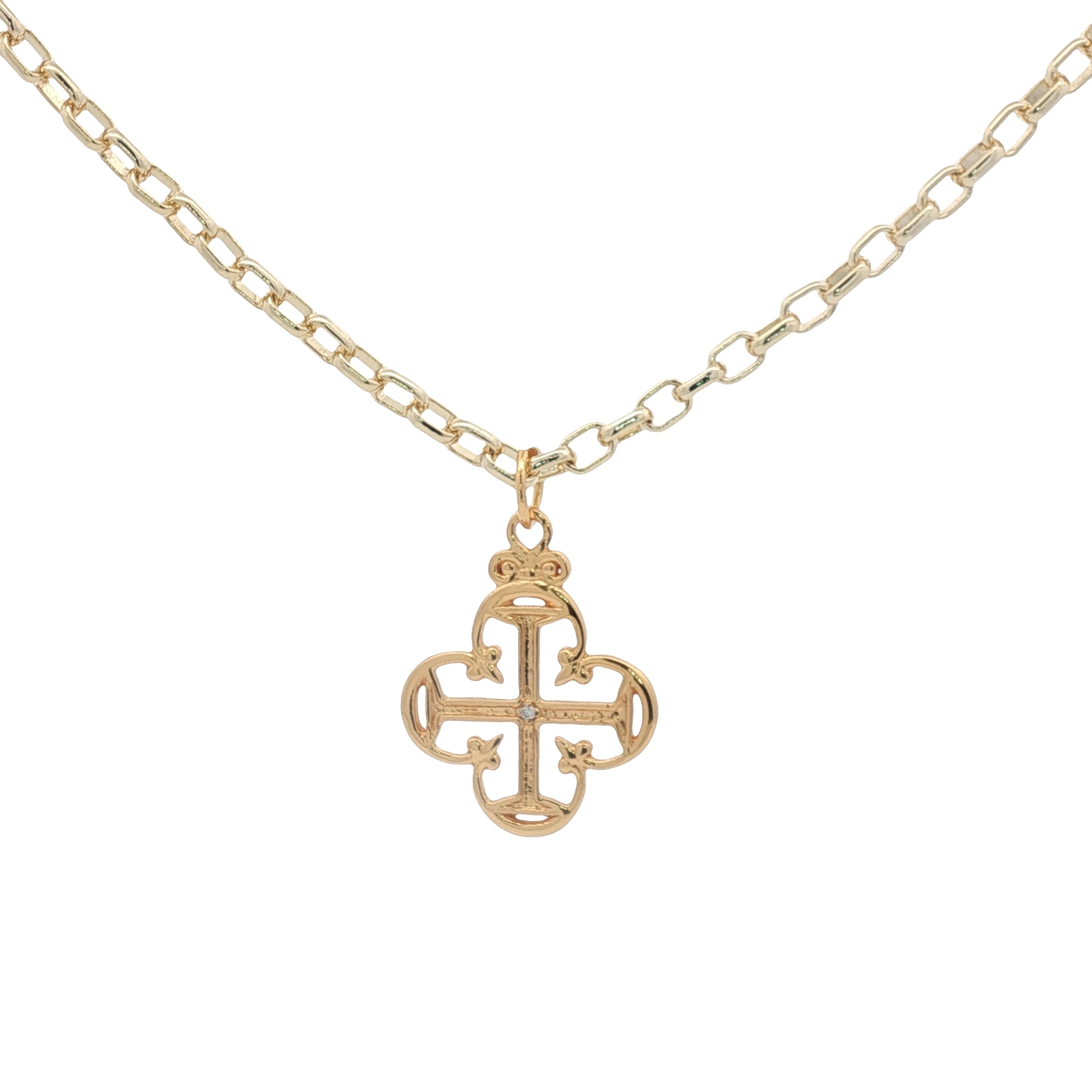 Collier doré médaille avec oeil en nacre et zircons 50 cm