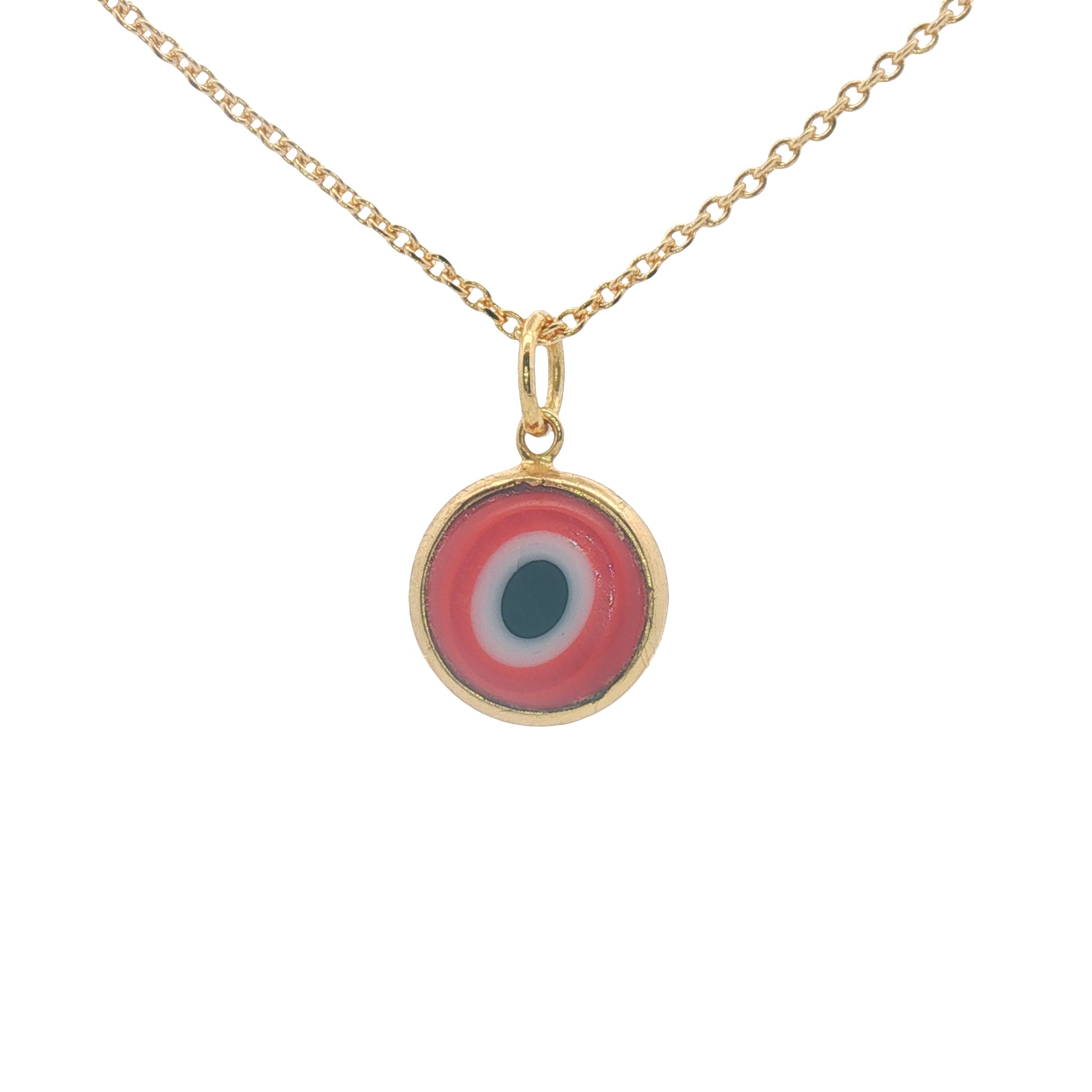 Small golden red blown glass eye necklace
