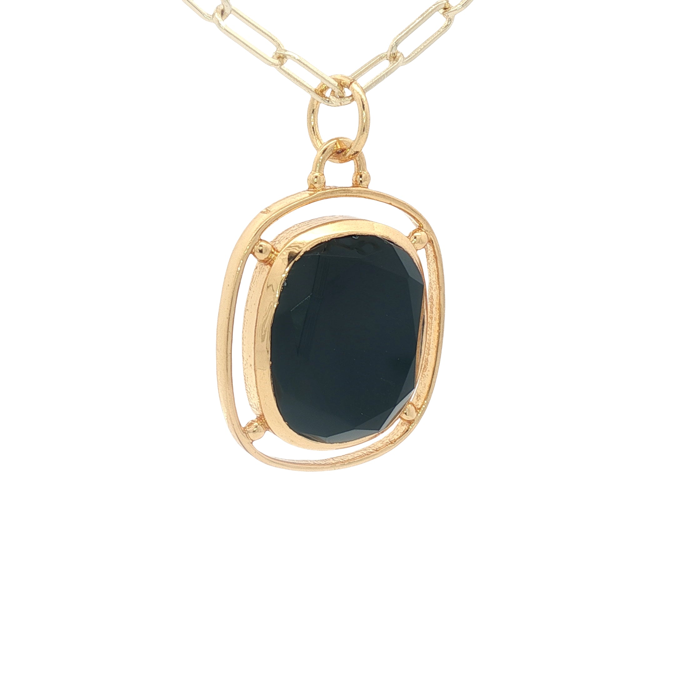 Collier doré médaillon ovale ajouré avec onyx noire 50 cm