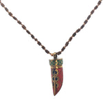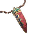 Pendentif Corne du Tibet en émail rouge, bleu et vert : 54 mm x 16 mm