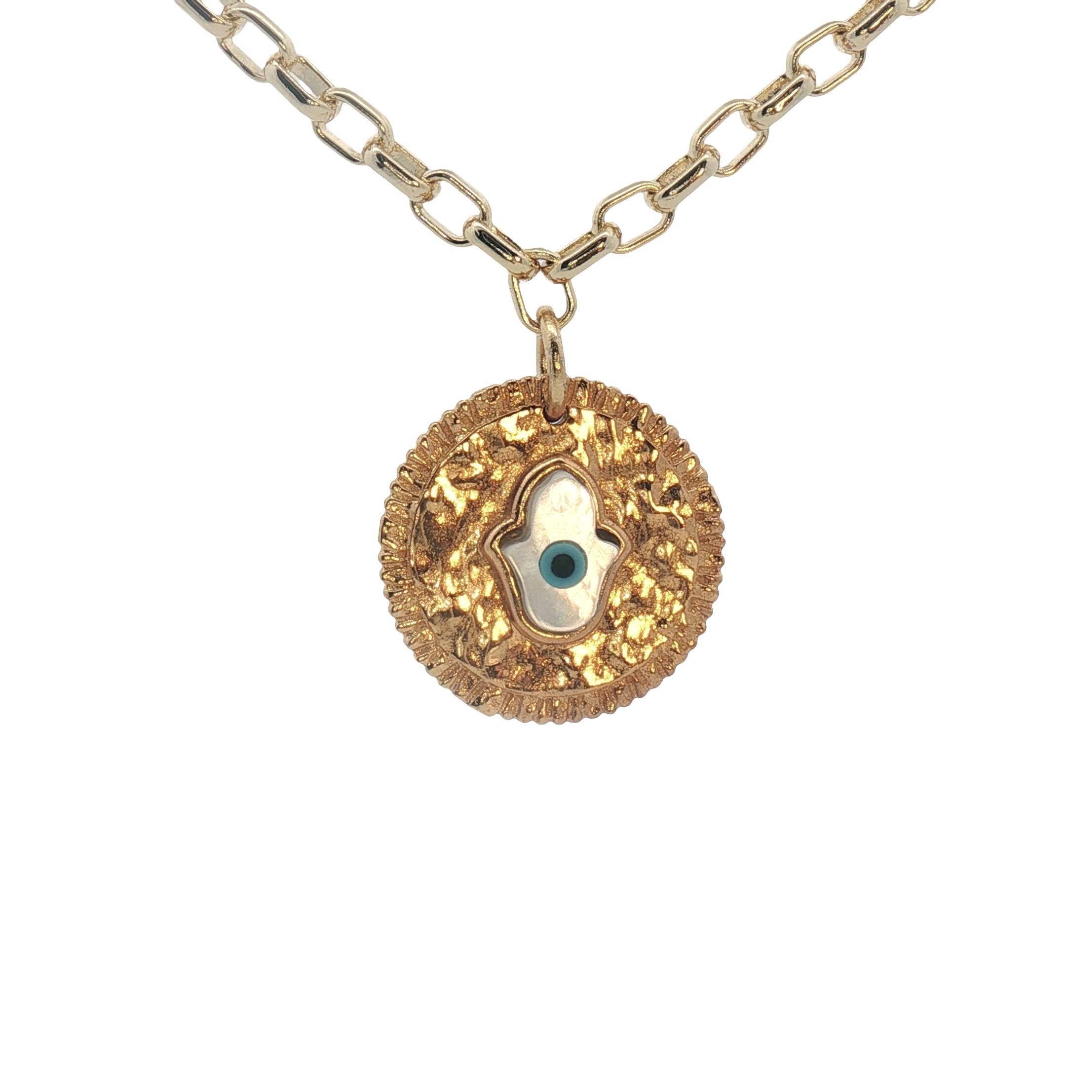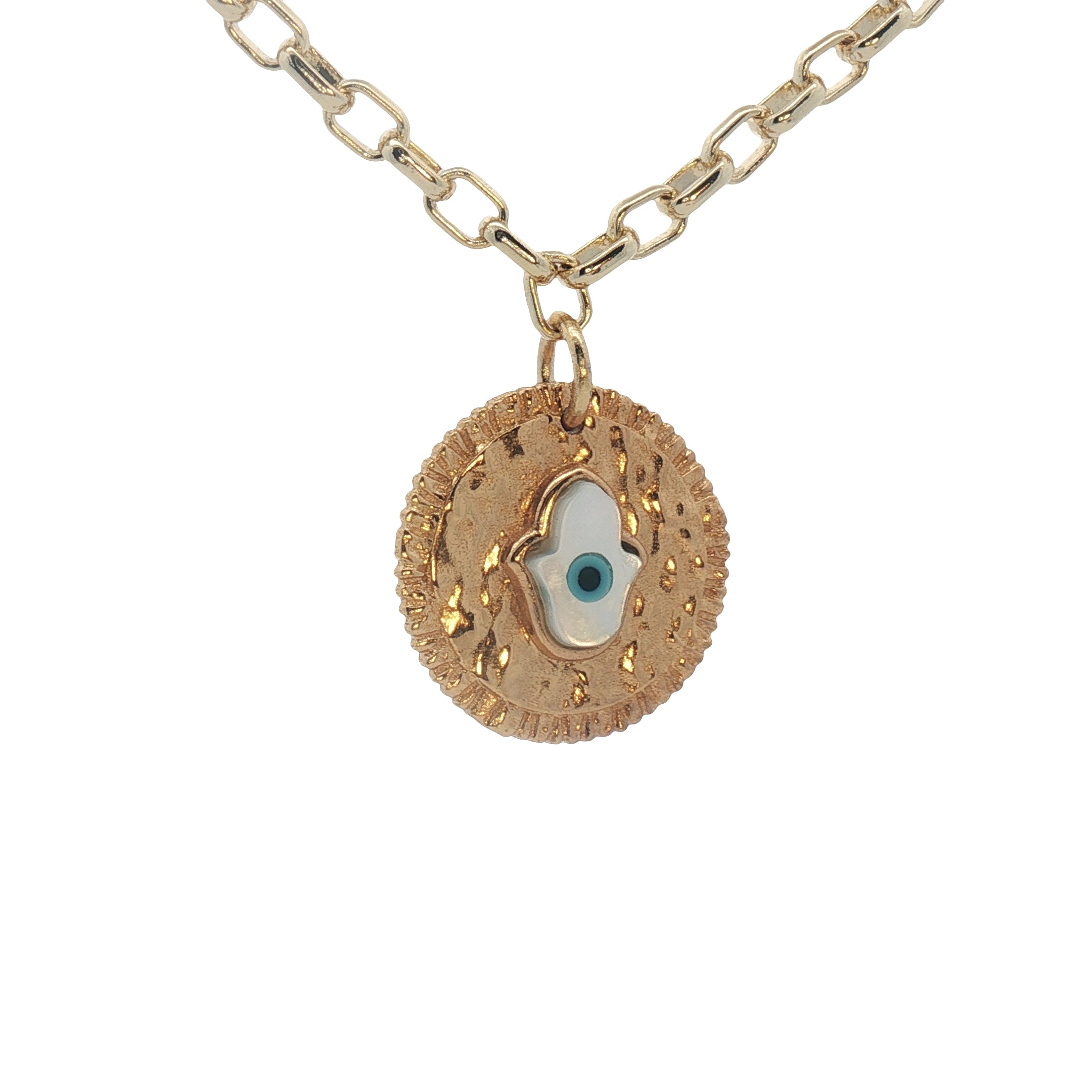 Collier doré médaille main de Fatma nacre et oeil 50 cm