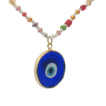 Collier doré oeil bleu perles multicolores 75 cm