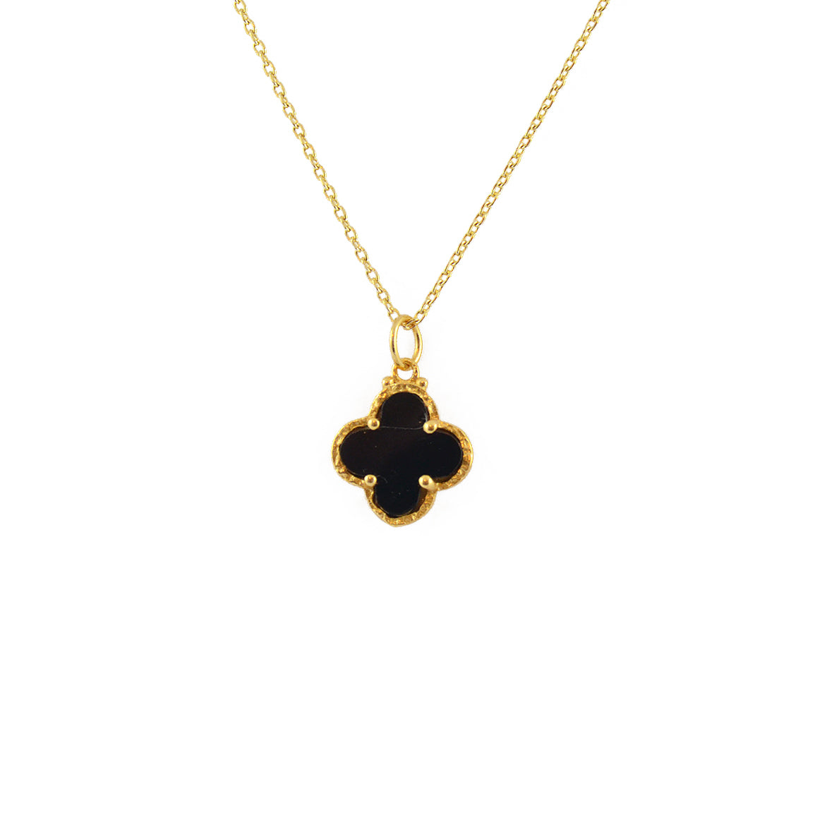 Clover pendant encrusted with a semi-precious natural stone set with 4 claws.