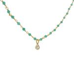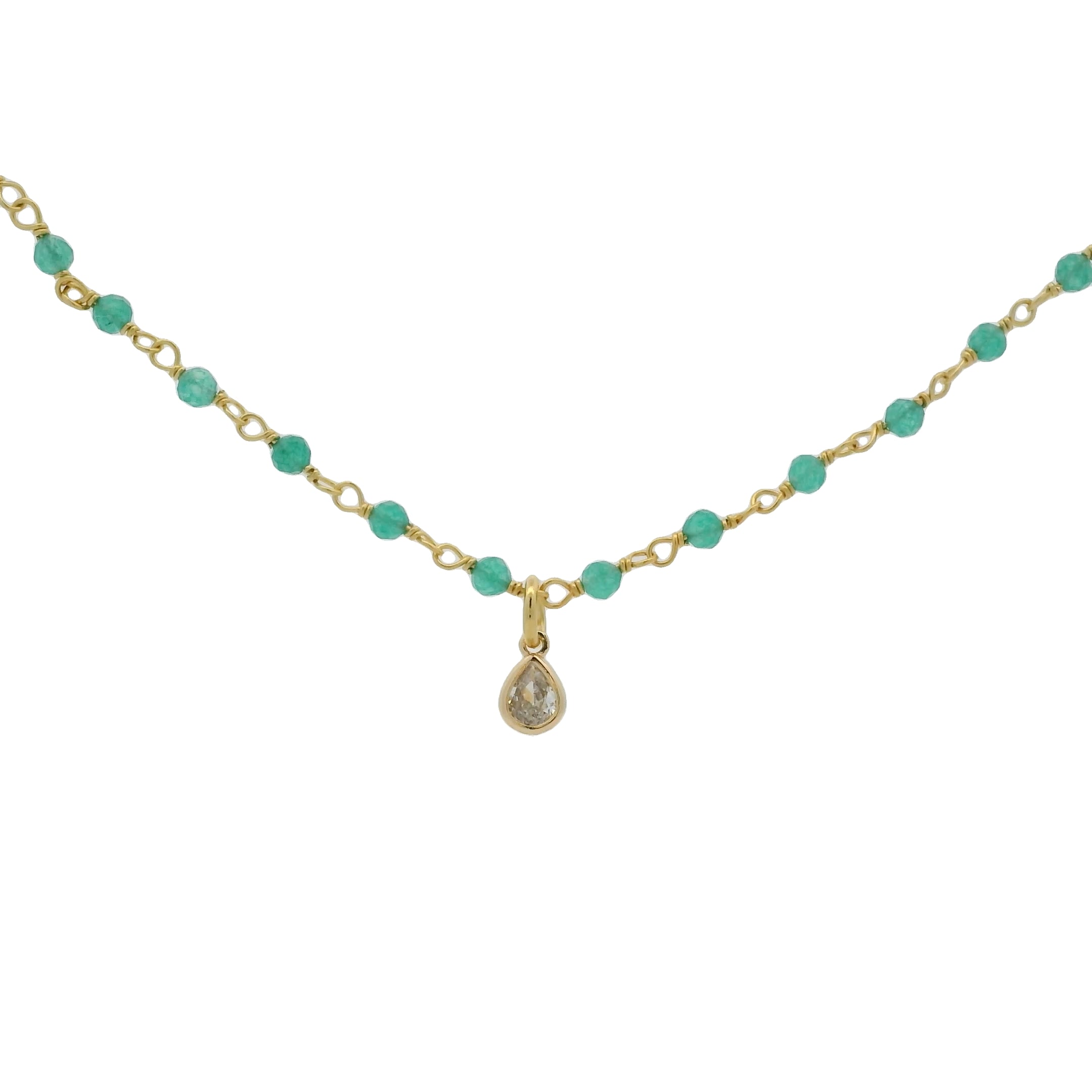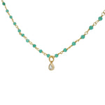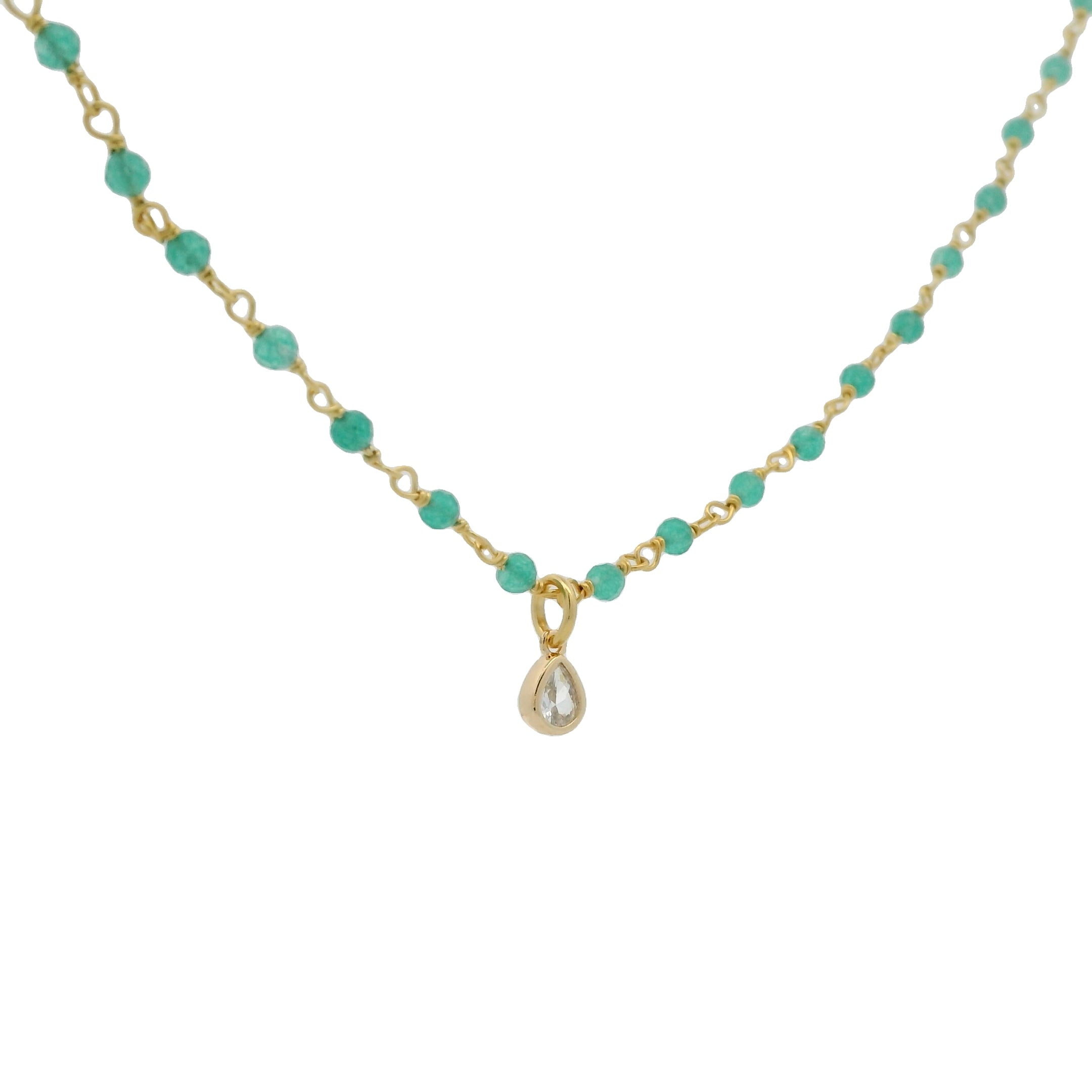Collier doré rosary onyx verte et zircon en goutte 42 cm