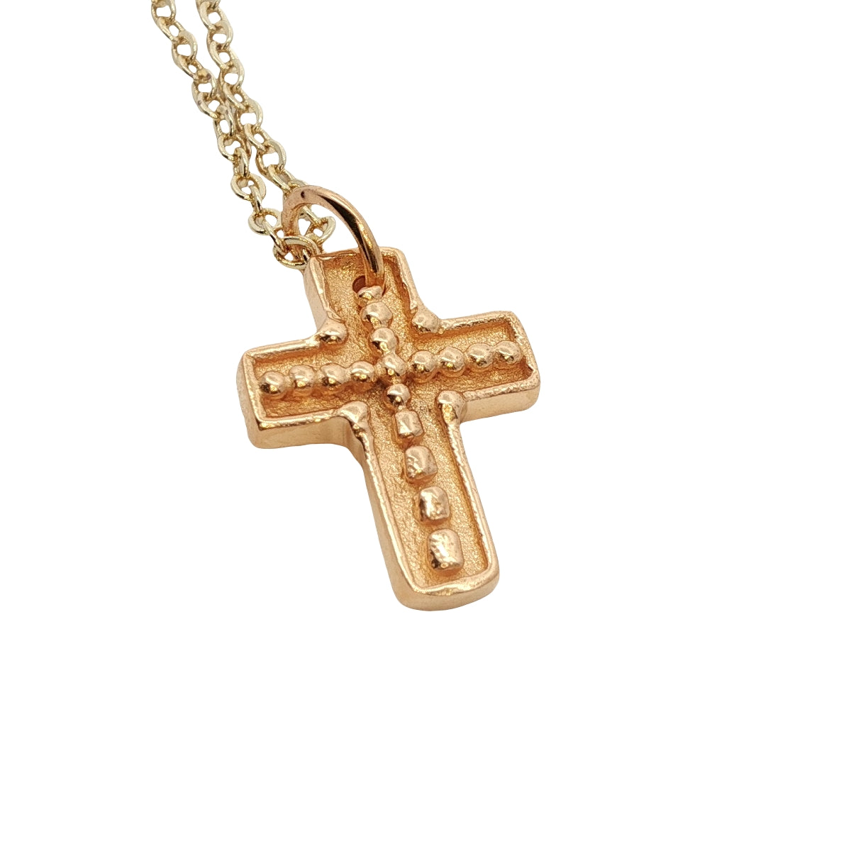 Collier doré croix avec petites boules 50 cm
