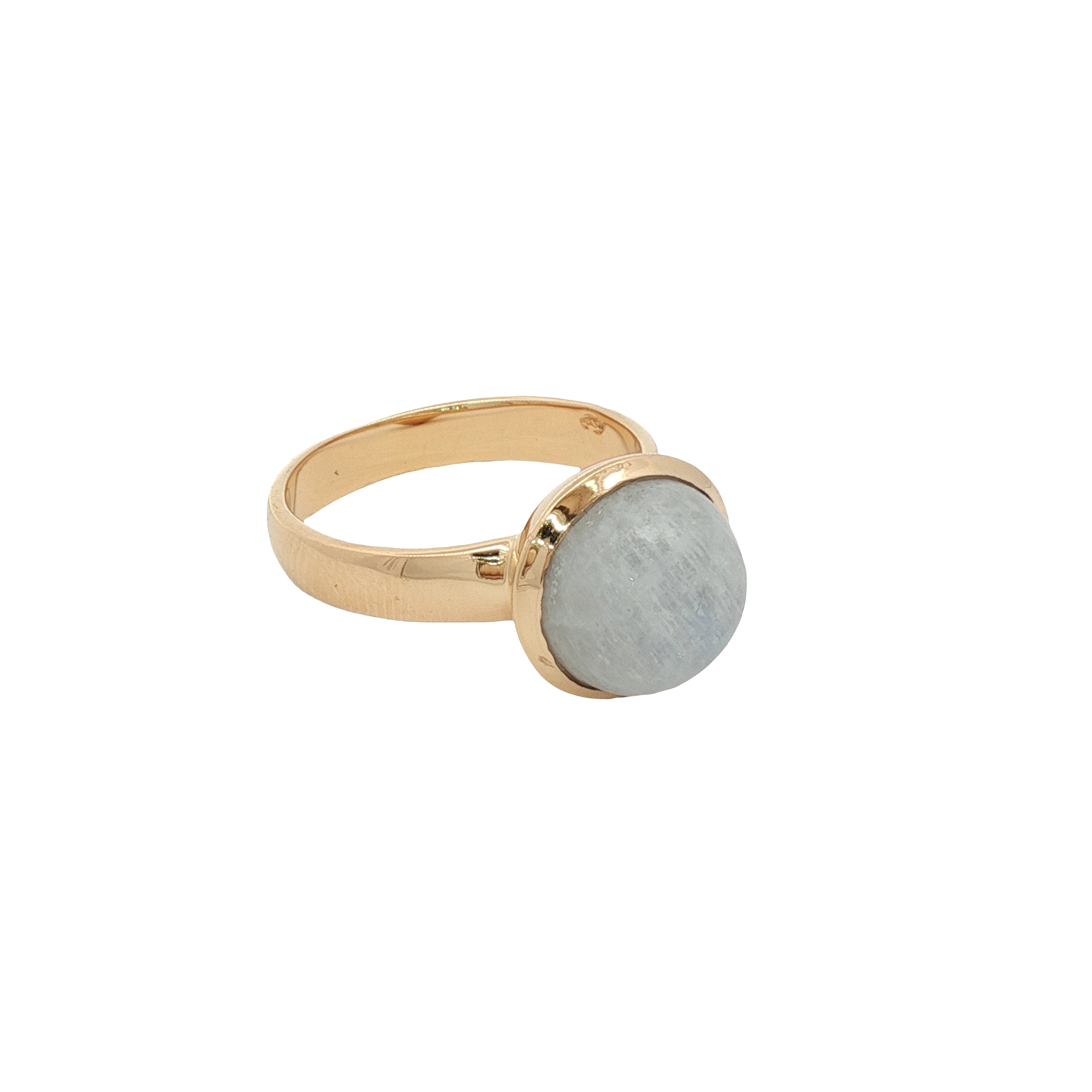 Bague dorée pierre de lune ronde en cabochon