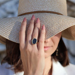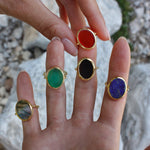 Ring in brass gilded with 18k fine gold decorated with a flat natural stone.