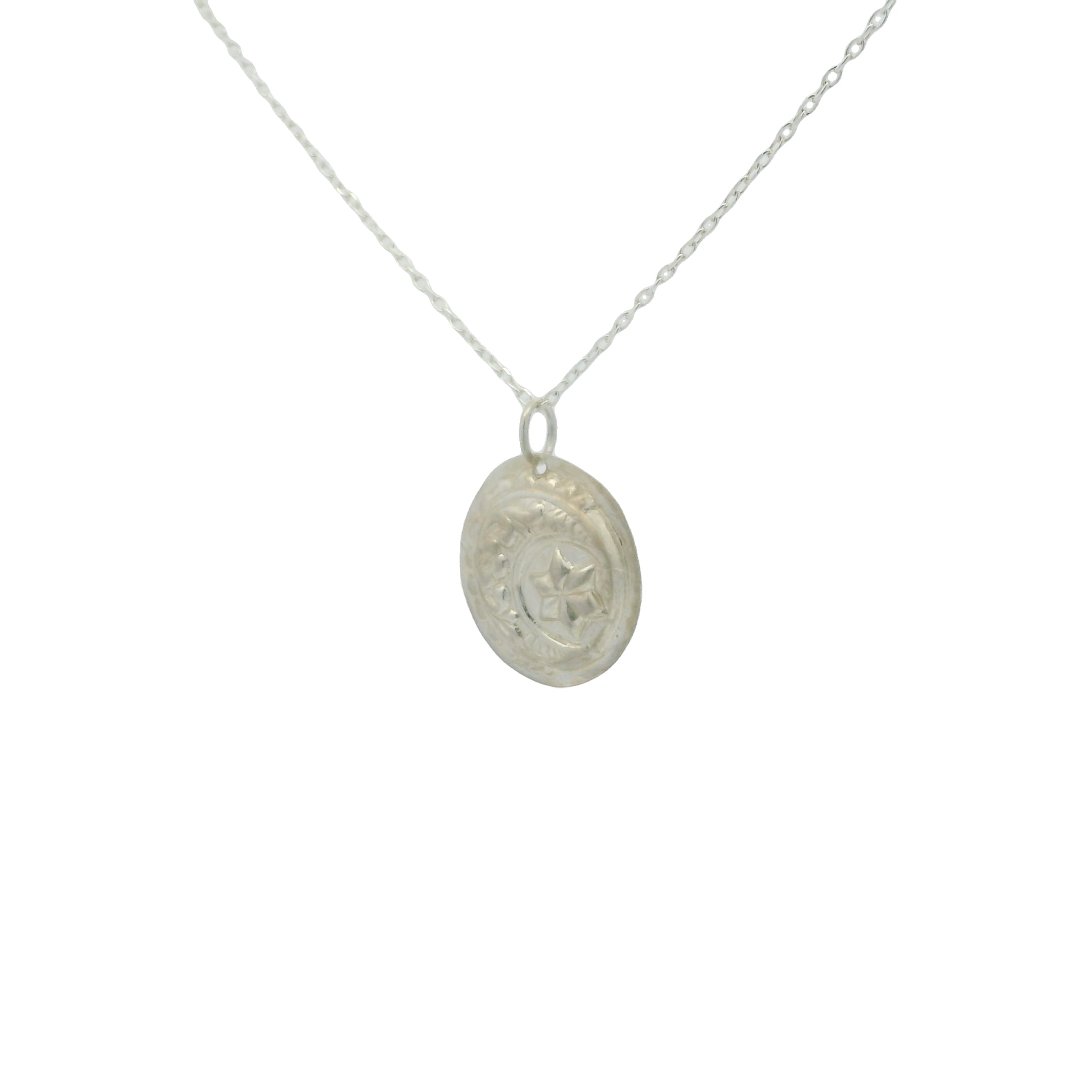925 silver necklace and hand-stamped matte medal.