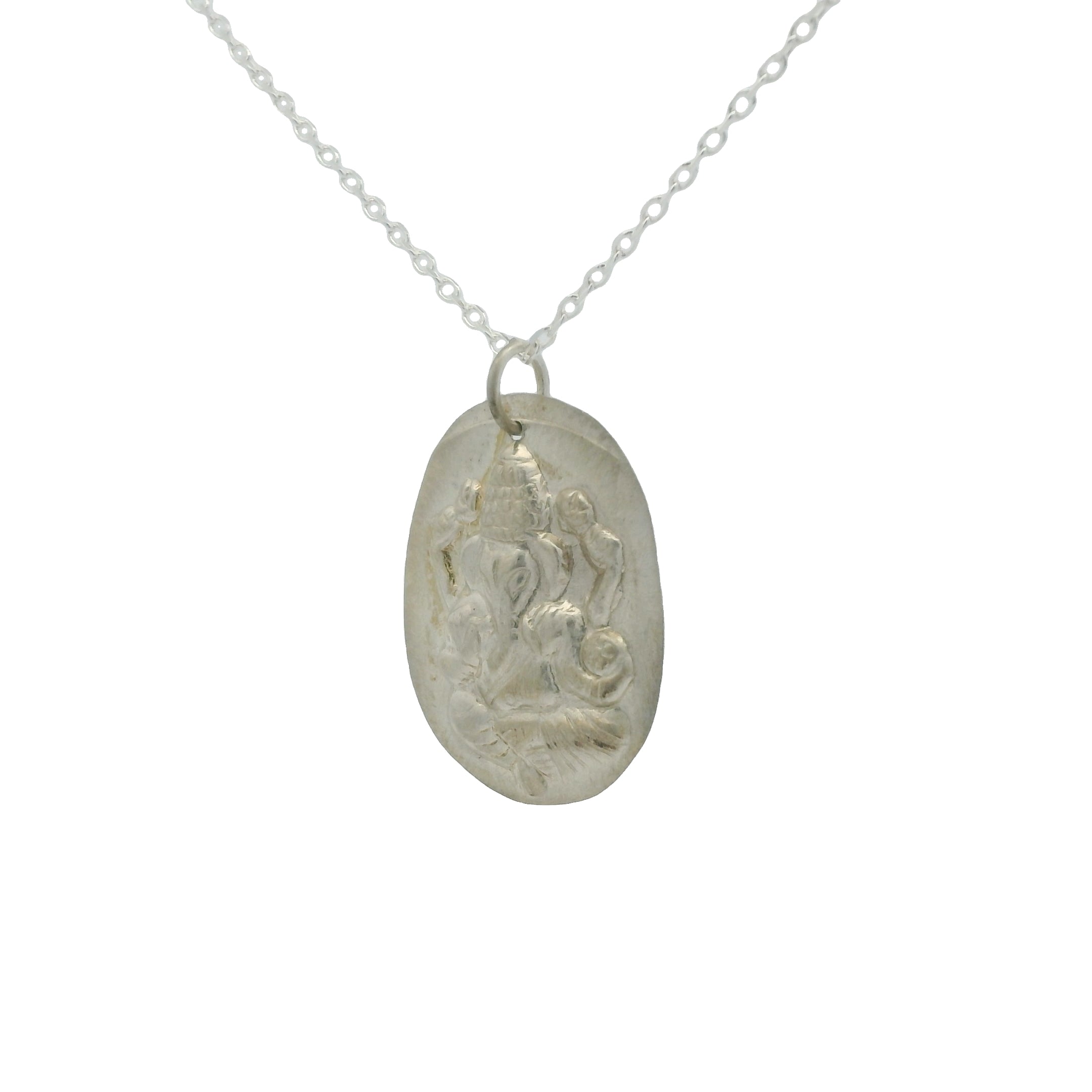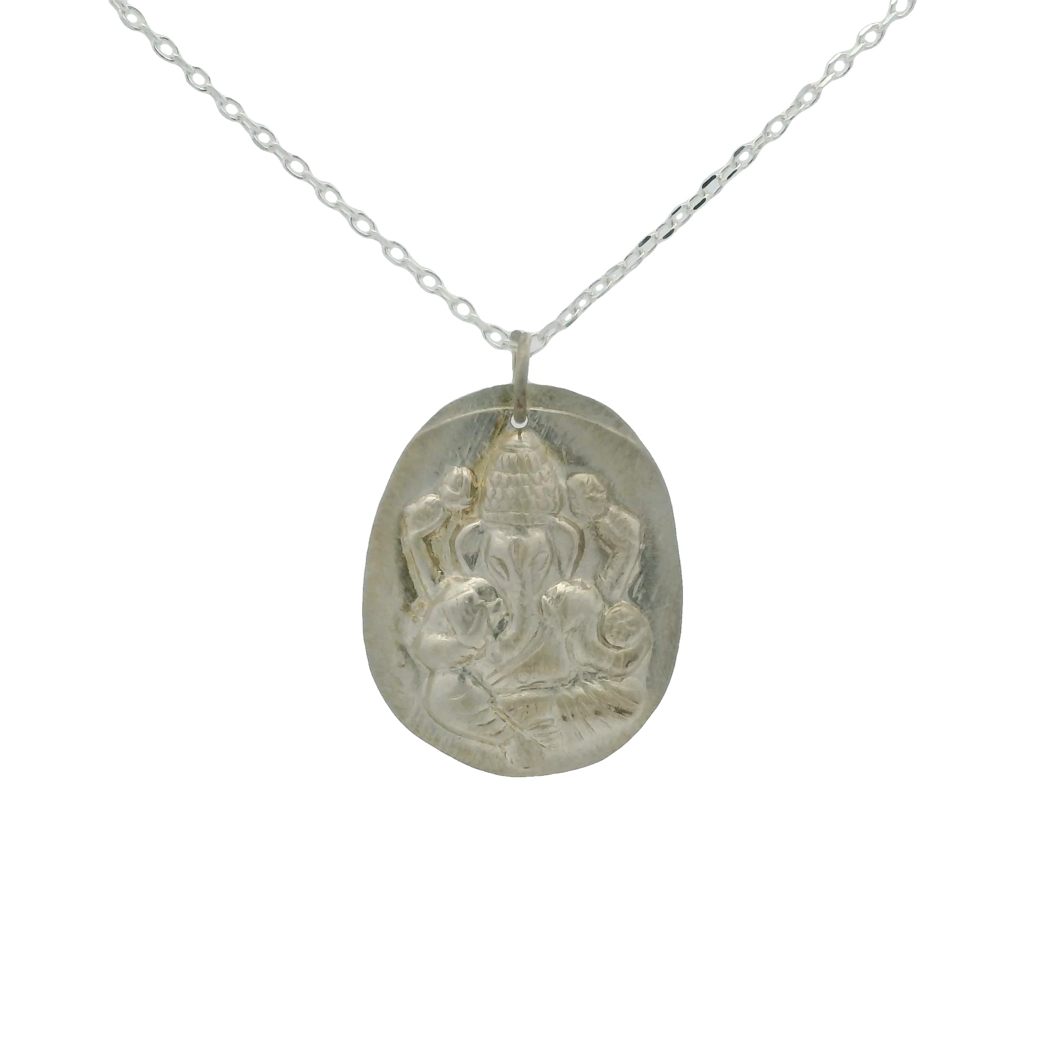 925 silver necklace and matte medal hand-stamped with the image of Ganesh.