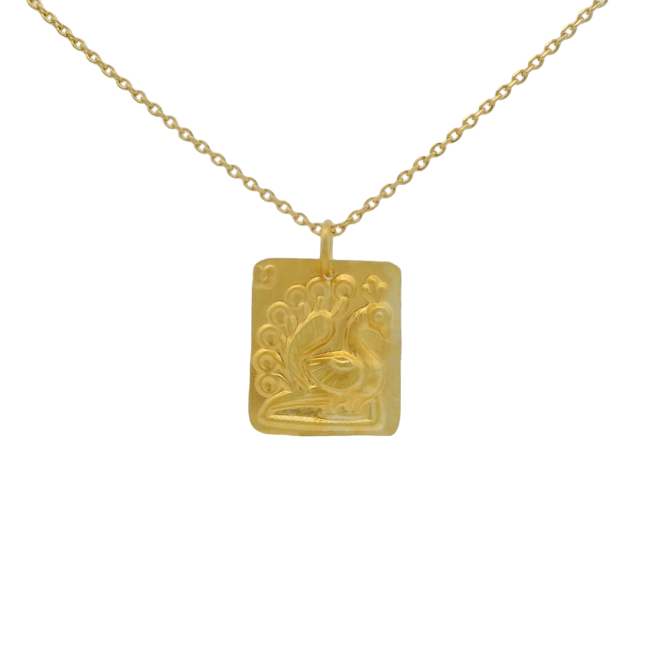 18k fine gold plated brass necklace and hand stamped matte pendant.