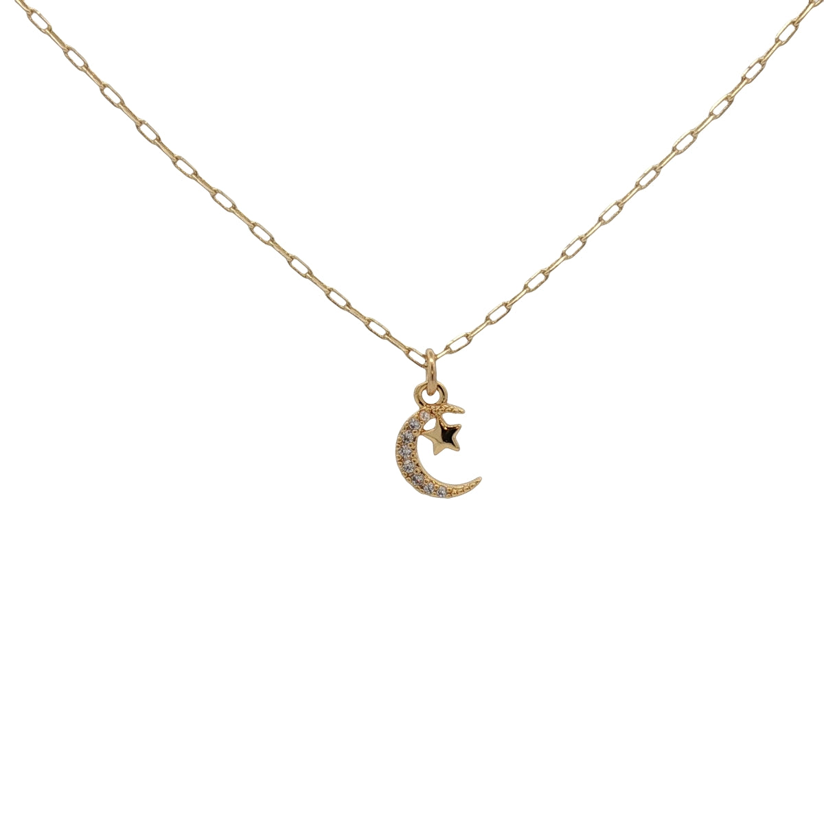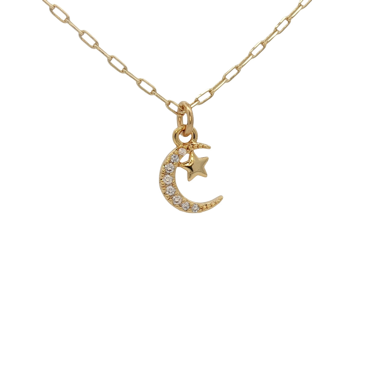Pendentif lune avec zircons blancs et étoile accrochée : 9 mm x 7 mm