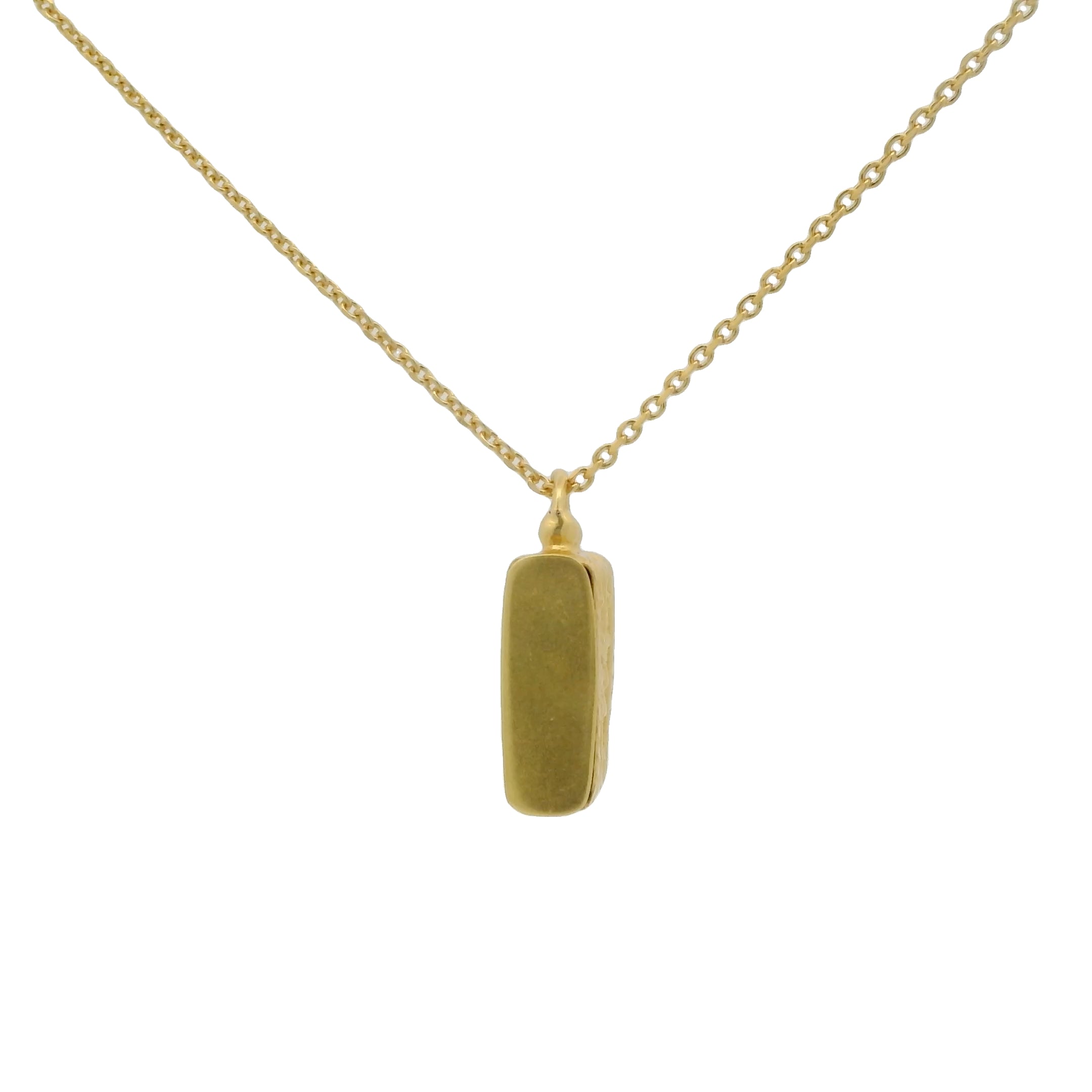 Necklace in brass gilded with 18k fine gold and matte pendant stamped by hand. Floral motifs adorn the box.